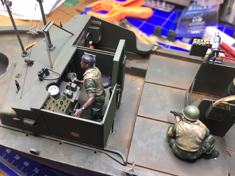 Aber ........... ich glaube Dir ist da ein Fehler unterlaufen . Dein Bootscaptain ist ein , wie heißt es doch so , Mehrpikmentierter . Ich sage einfach mal Schwarzer ( und nein , ich bin kein Rassist oder N*** oder was es auch immer für Idioten gibt . Eine Vielzahl meiner Freunde und Bekannten sind anders Aussehend sag ich mal . ) Im Vietnamkrieg waren das nun mal Schwarze . Diese waren zwar in der Mehrzahl aber Rangtechnisch fast nur ganz unten . Somit wäre er eher nur der Gunner und ein Weisser der Captain . Als Ausnahme wären dann alle Besatzungsmitglieder Dunkelhäutig . Das ganze beruht nun mal auf den Rassenhass der Amis zu der Zeit , und den es heute leider immer noch gibt.