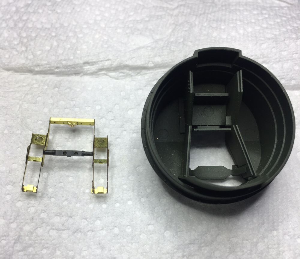 Aus der orginalen Plastiklafette müssen die runden Querverbinder vorsichtig ausgesägt weren und an die Metallteile geklebt werden.