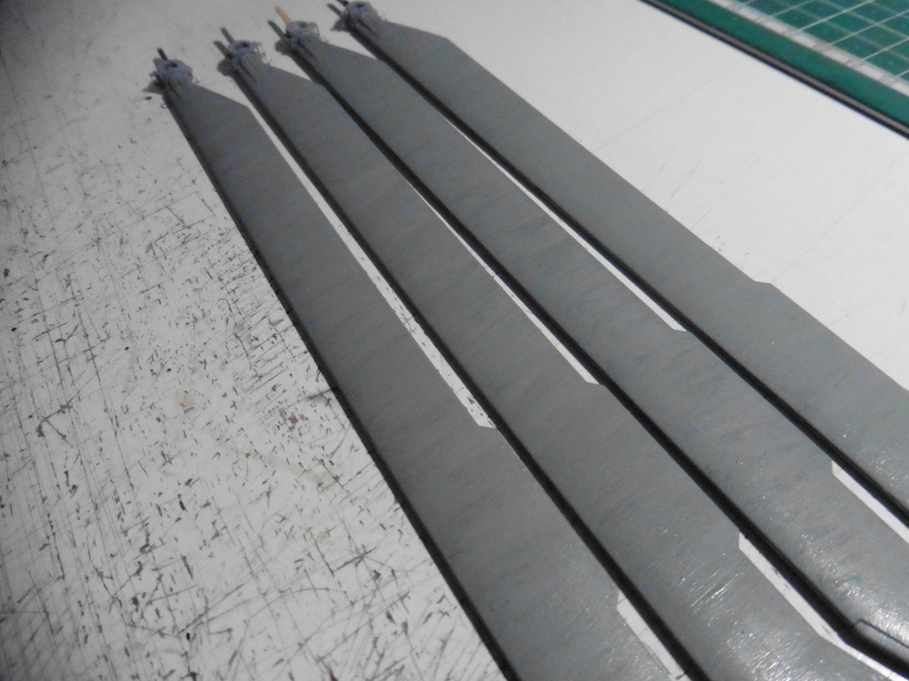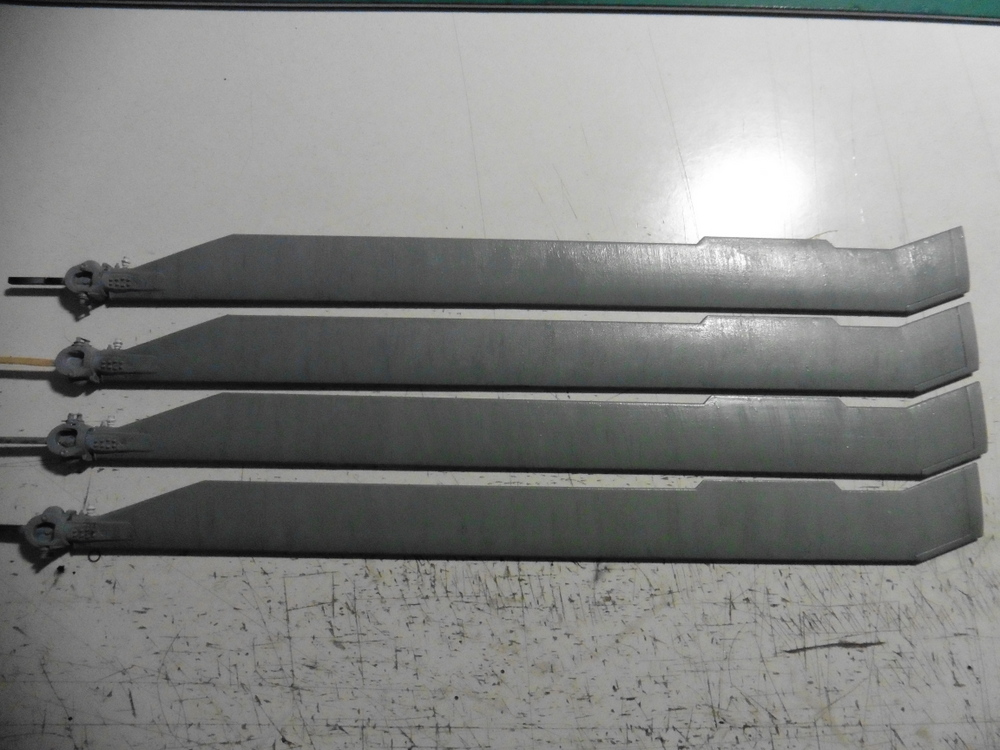 So zwischendurch habe ich mit den Rotorblättern weiter gemacht . Diese wurden Lackiert . Nach dem Trocknen habe ich diese erst einmal mit Klarlack SM gestrichen .