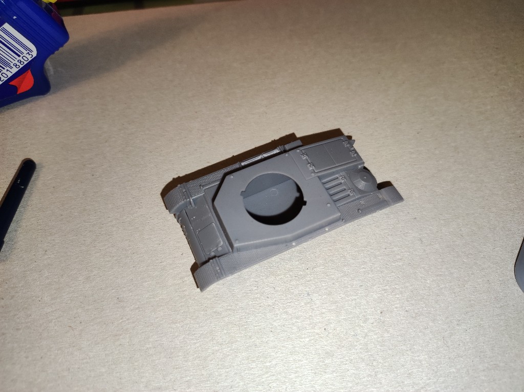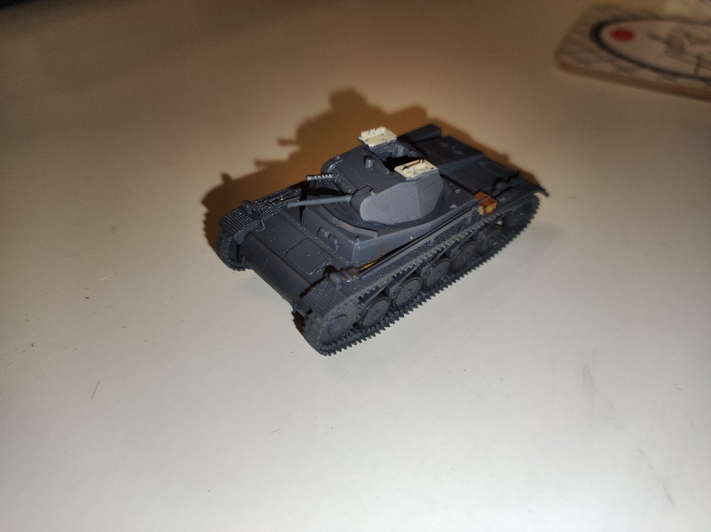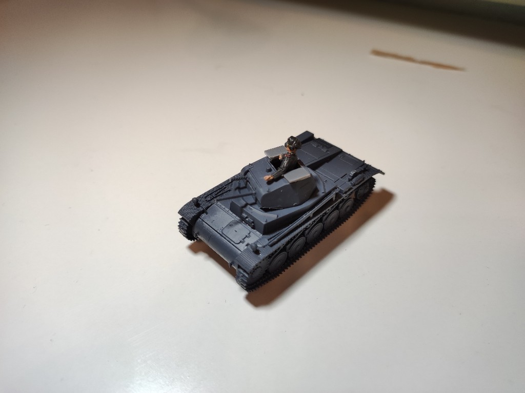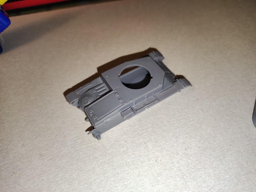 Relativ klug vom Hersteller das dunkelgraue Plastik zu verwenden, so könnte man als Wargamer den Panzer auch ohne Farbe verwenden, aber wir sind Modellbauer und da ist es ein No-Go :lol: