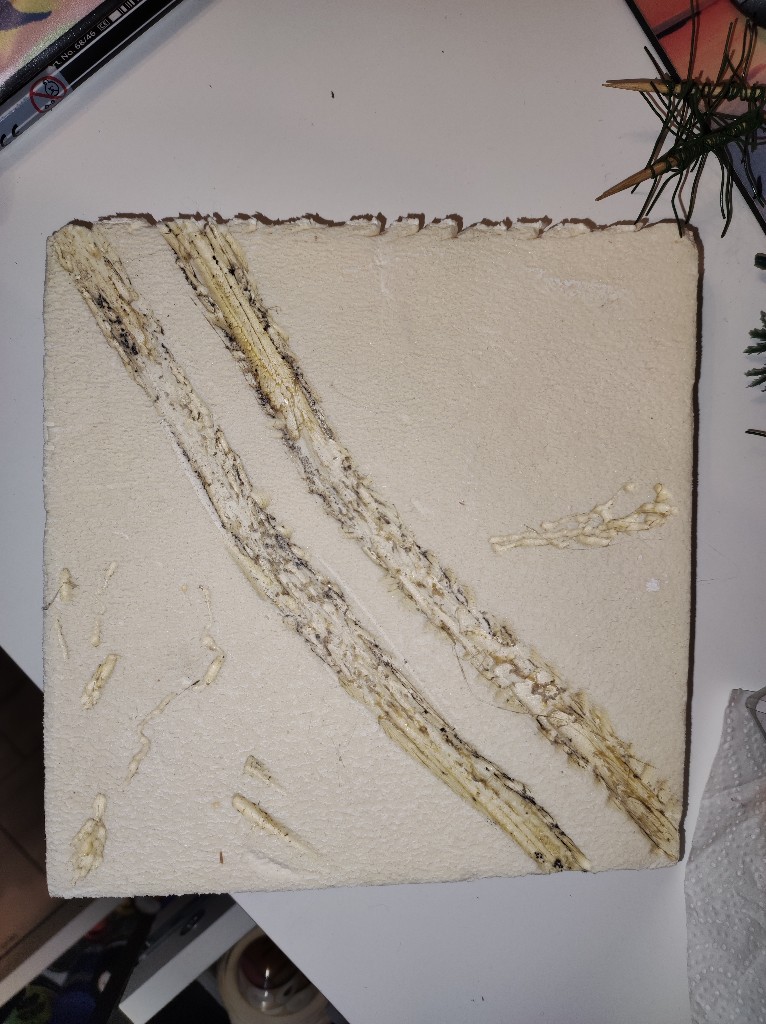 Es folgt die bemalung mit Erde und Leim als gemisch. Dieses Mal leider etwas dünn geworden. Die hellen stellen werde ich mit Farbe übersprühen