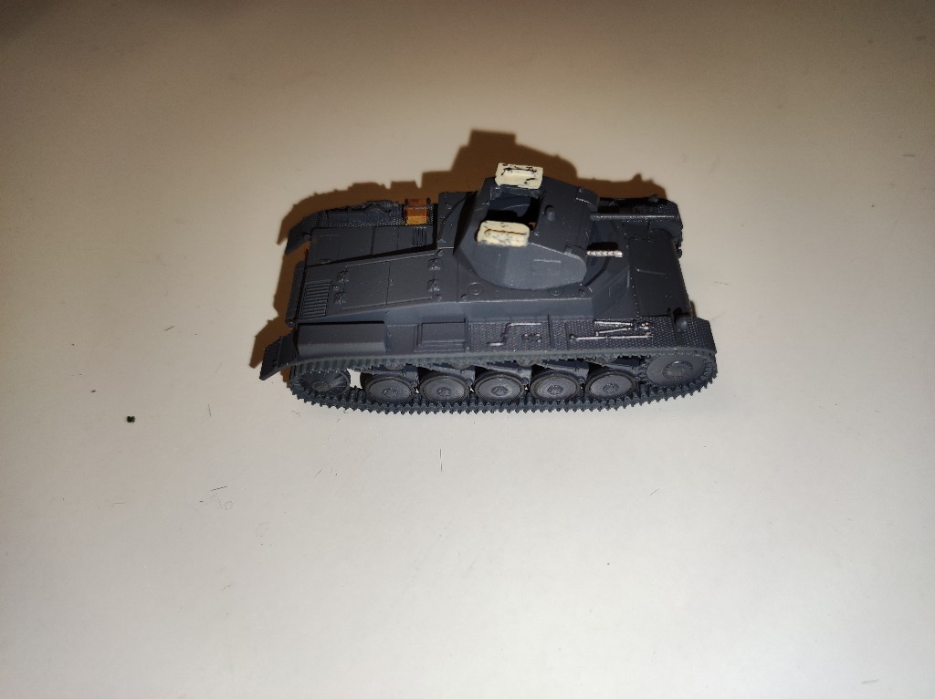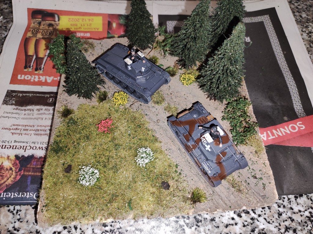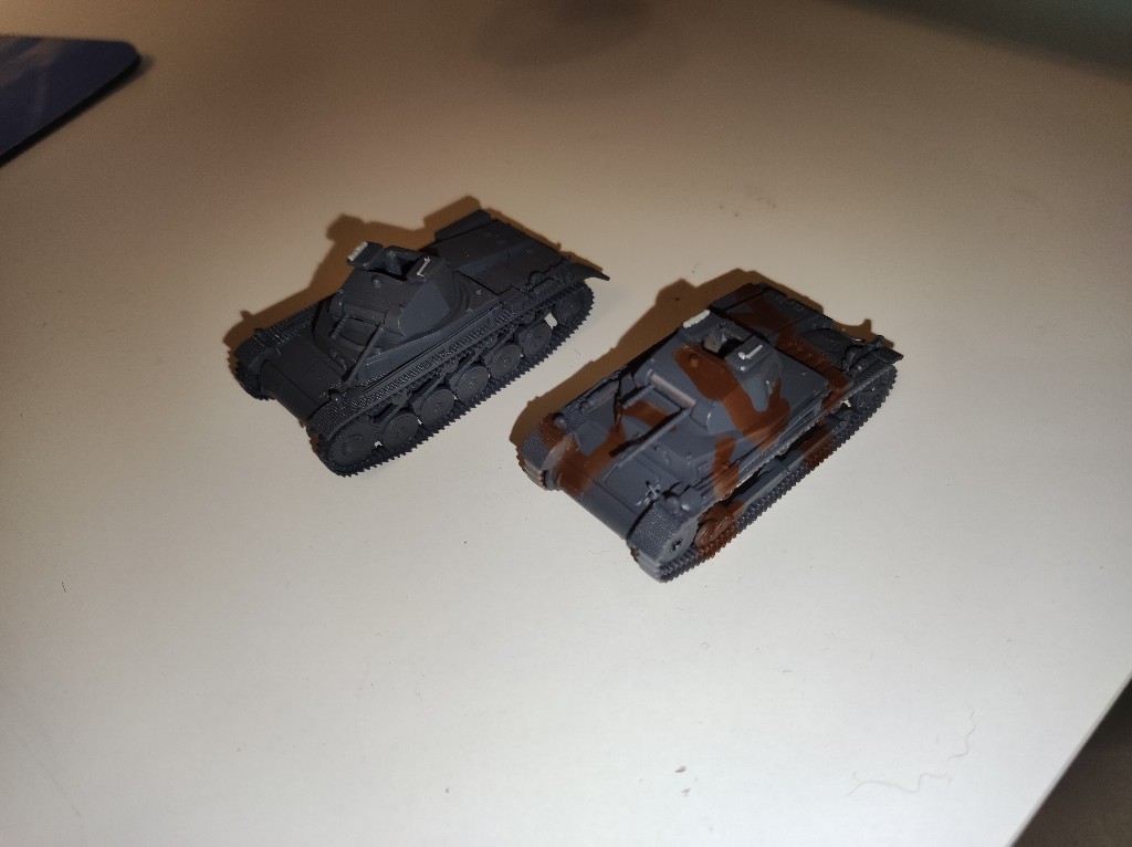 So zu den beiden Panzern: gestern kam dann auch schon Farbe ins Spiel, der Panzer aus dem Hause First to Fight in Panzergrau und der IBG-Panzer in einer seltenen Tarnung Panzergrau und Schockobraun. Das gab's so wirklich, aber würde auf eine Weisung hin, Ende 1939 endgültig durch einfarbig Panzergrau ersetzt