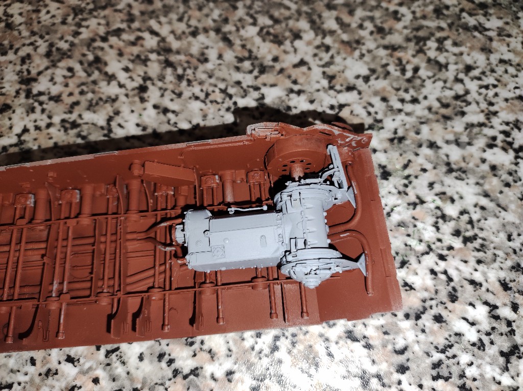 Ein bisschen weiter gemacht, zunächst das Getriebe bemalt mit Grau.