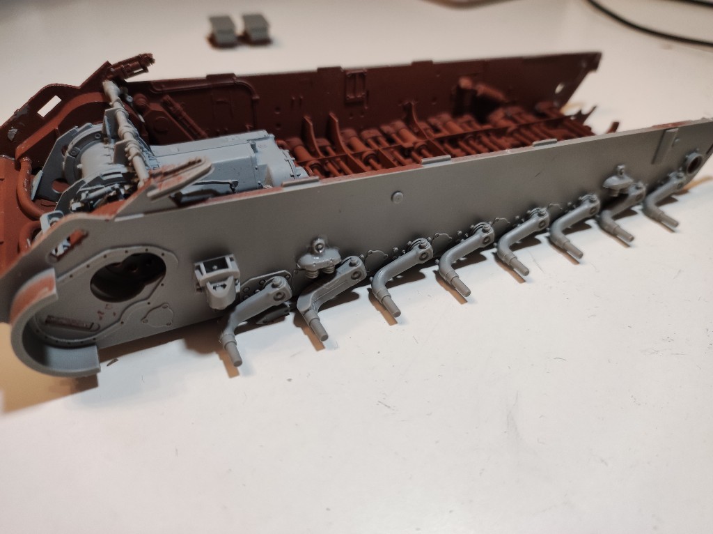Weiter ging der Bau mit den Innenleben der Kettenabdeckung bzw. der Seiten. Unter anderem wurden die Halterungen für die Munition angebracht