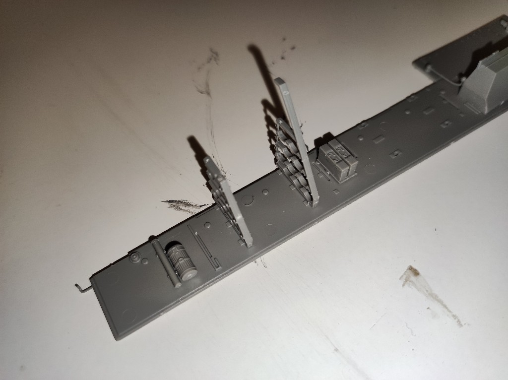 Dann ging es mit den Seitenwänden los. Sehr viele nette Details und absolut gut. Allerdings sollen Teile der Struktur entfernt werden, je nach Version. Nur leider wird nirgendwo so richtig ersichtlich welche Version welche Änderungen hat und zu welchem Vorbild gehören