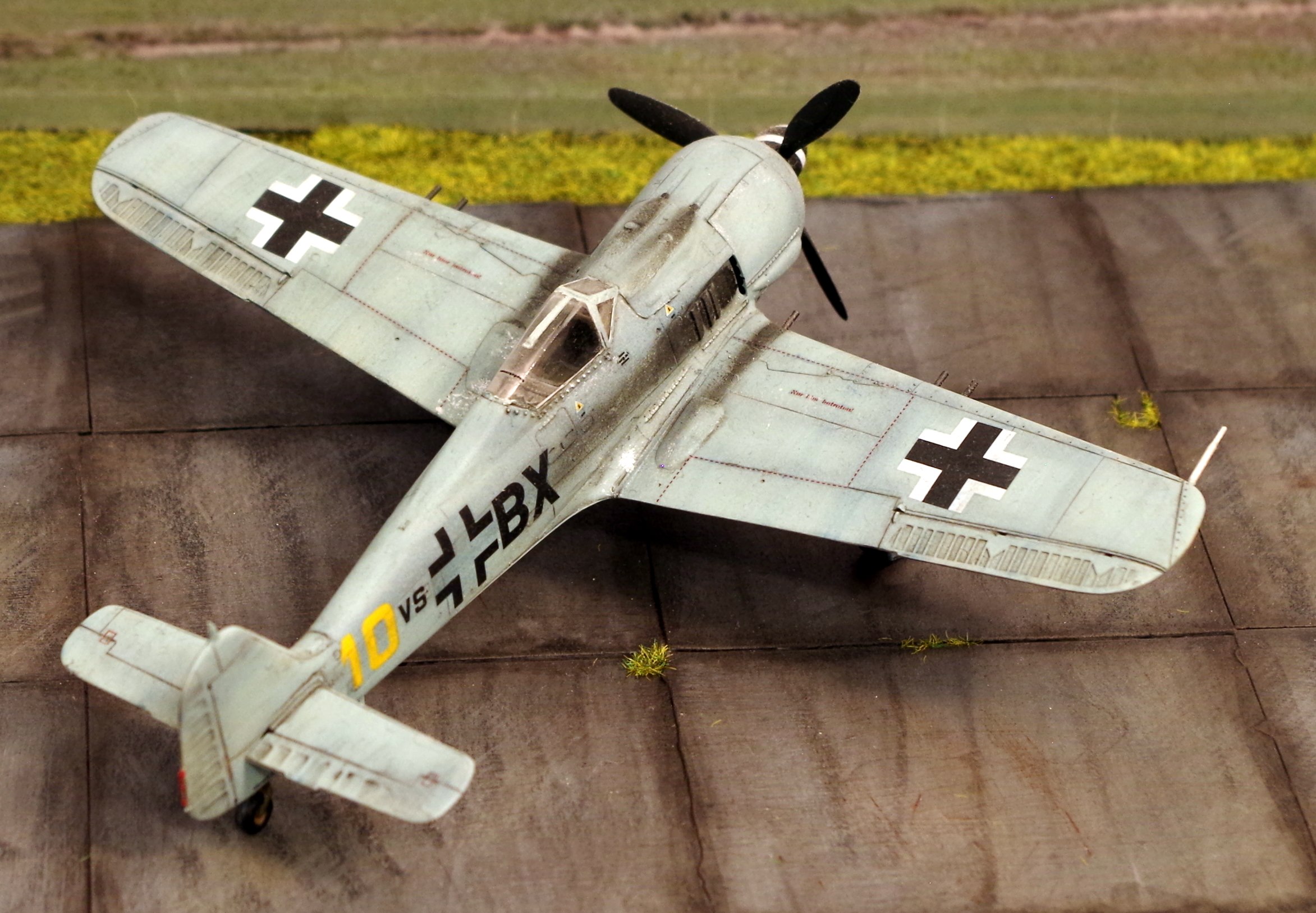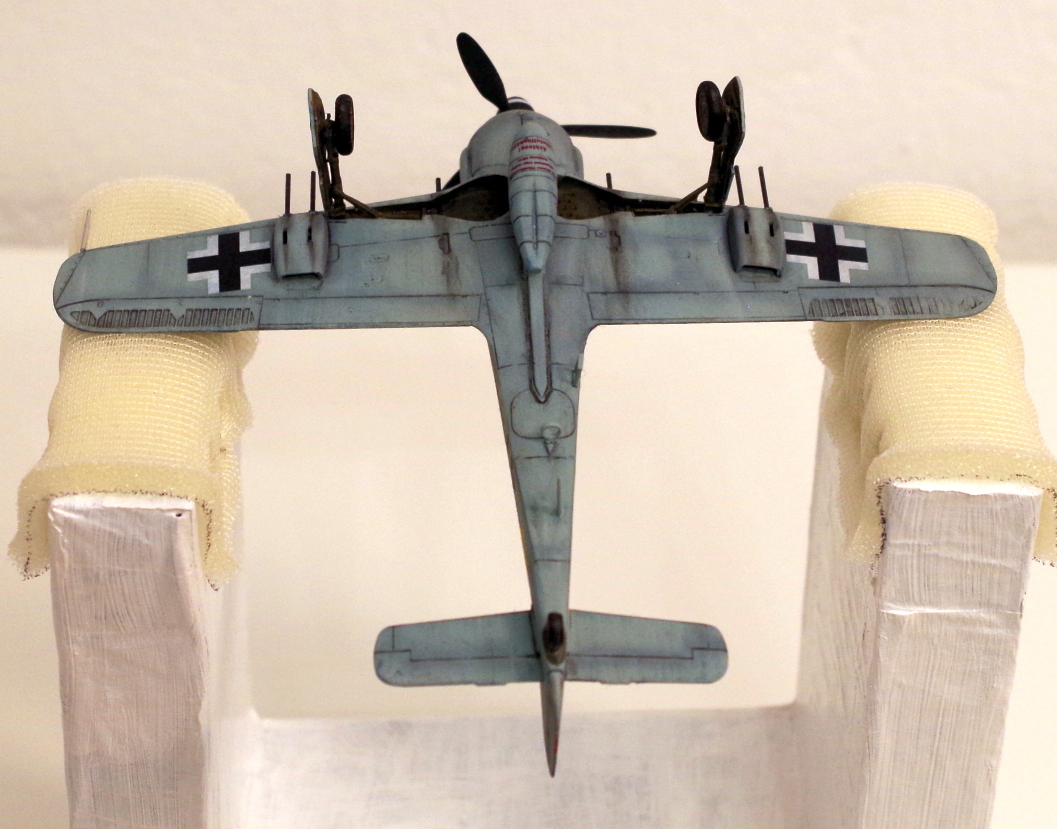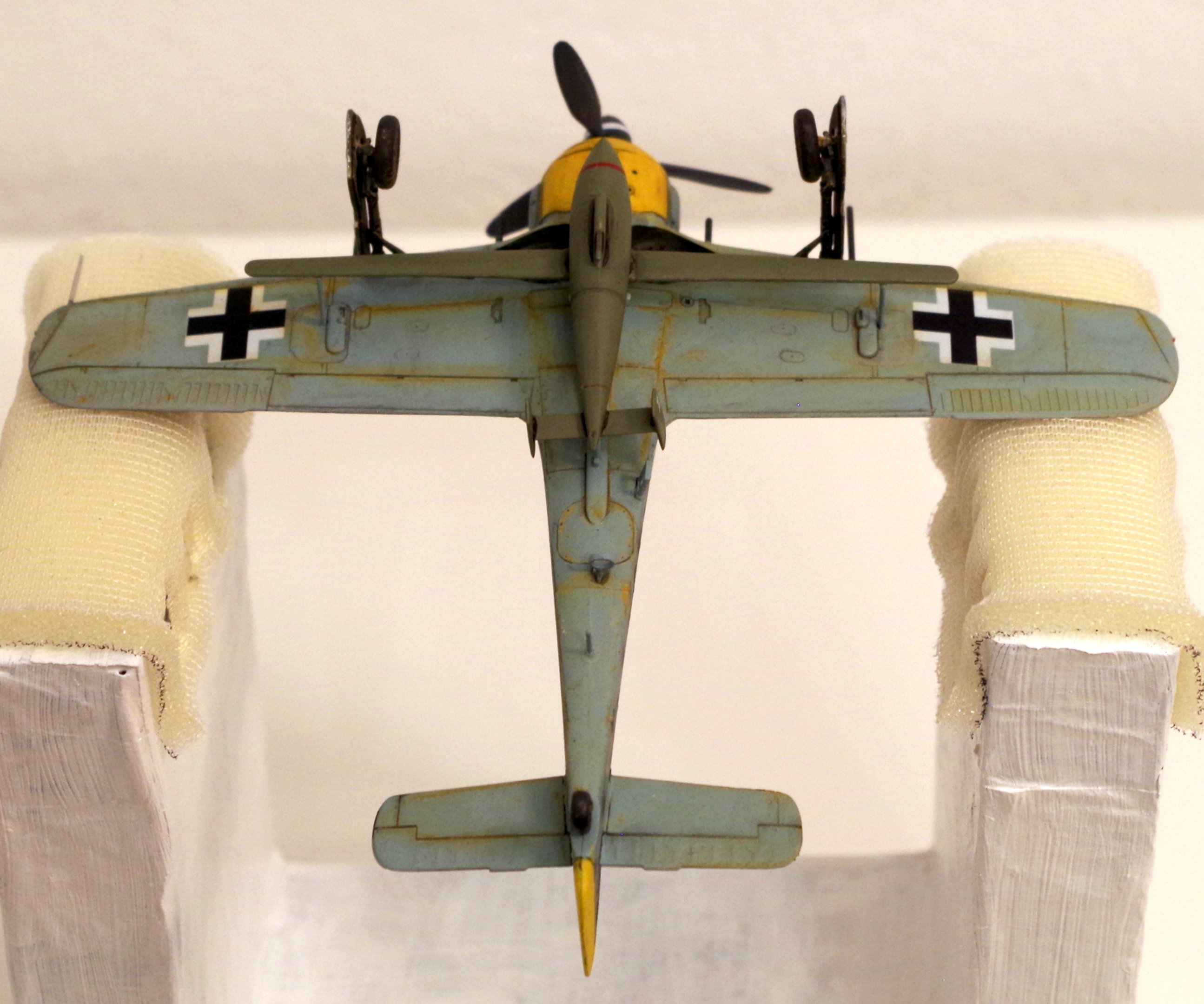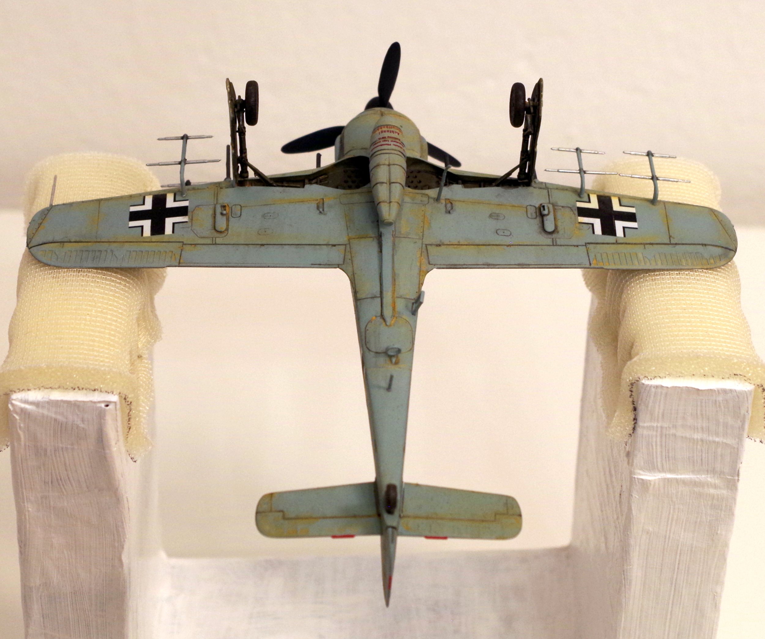 Danach eine Focke-Wulf Fw 190 A-8 R1 mit zwei Waffenbehältern mit jeweils zwei MGs. Die Lackierung ist bei dieser Variante zwar etwas eintönig (komplett in RLM 76), aber auch das hat seinen Reiz. Für die Lackierung bietet sich ein Preshading geradezu an, das noch ganz subtil durchscheint.