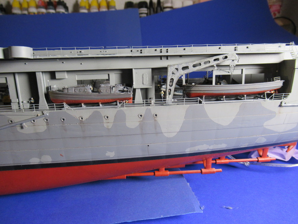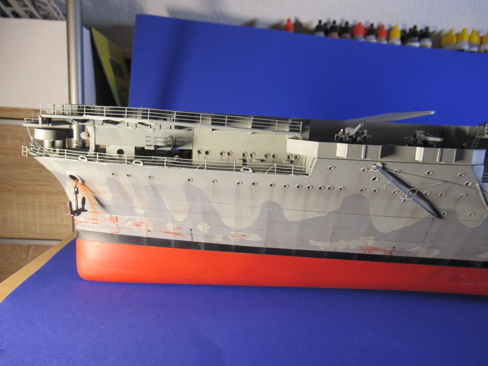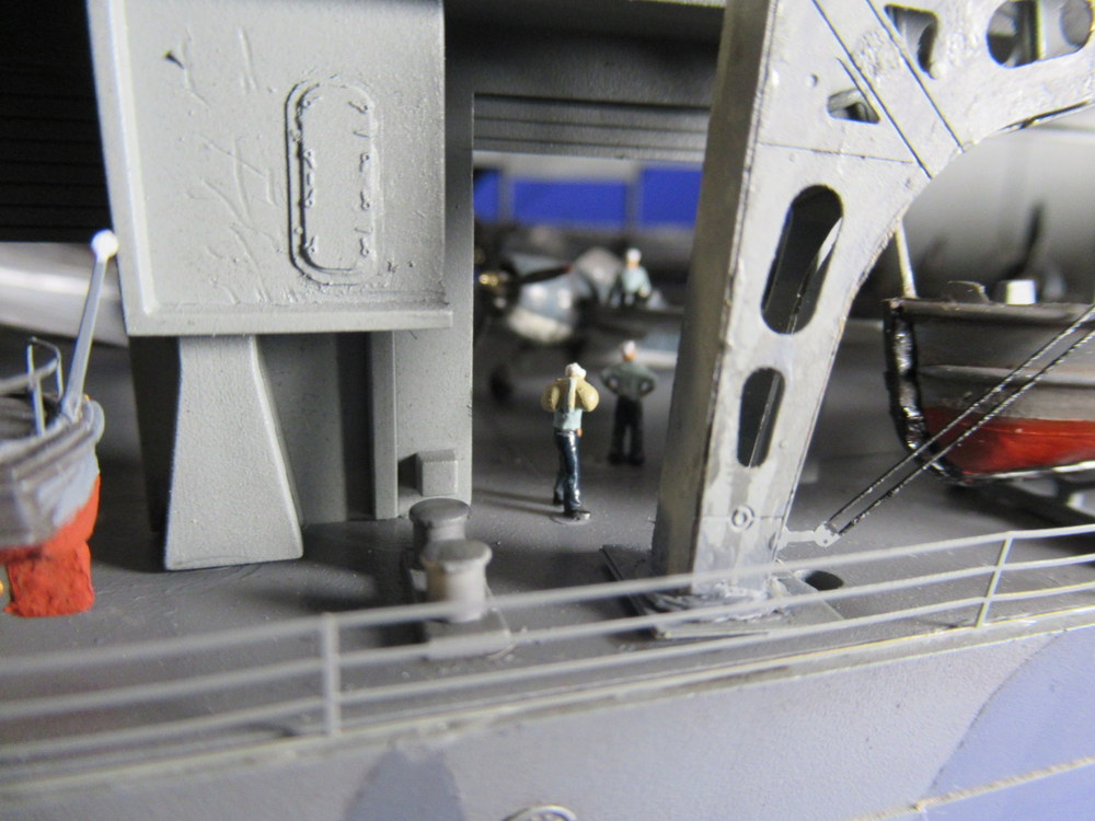 Tja ... hat sich was mir Schwubs... Vor dem deck musste ich erst noch die Inneneinrichtung fertig stellen . Was auch Soldaten beinhaltet und andere dinge wie die Beiboote / Kran ... da kam dann noch soviel kleinkram zusammen , dass ich echt eine ganze Weile gebraucht habe um die Seiten fertig zu bekommen .