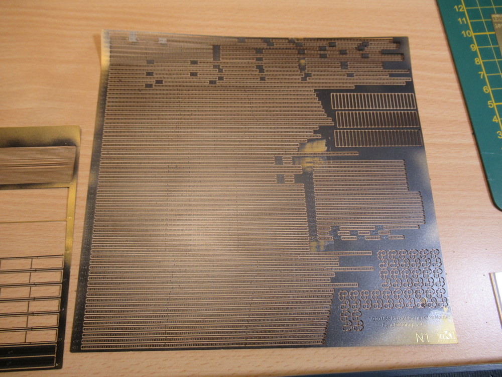 Sämtliche Ätzteile habe ich dann in Schwarzmetall auf den Platinen Gebrusht . Hier für habe ich von ModelAir das Negro71.073 Black genommen . Das hat leichte Silberanteile mit drin die leicht Bläulich schimmern . Man könnte auch gut das GunMetal von Tamiya X-10 benutzen .