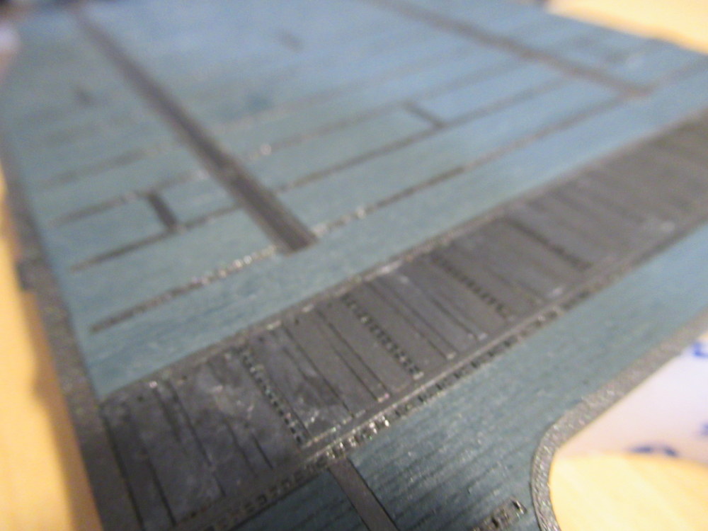 Nachdem das dann alles rausgefrimmelt war hab ich überlegt , wie ichs am besten mache . Ich bin zu dem Schluss gekommen , erst einmal das Deck in DeckBlue 5 zu Brushen .