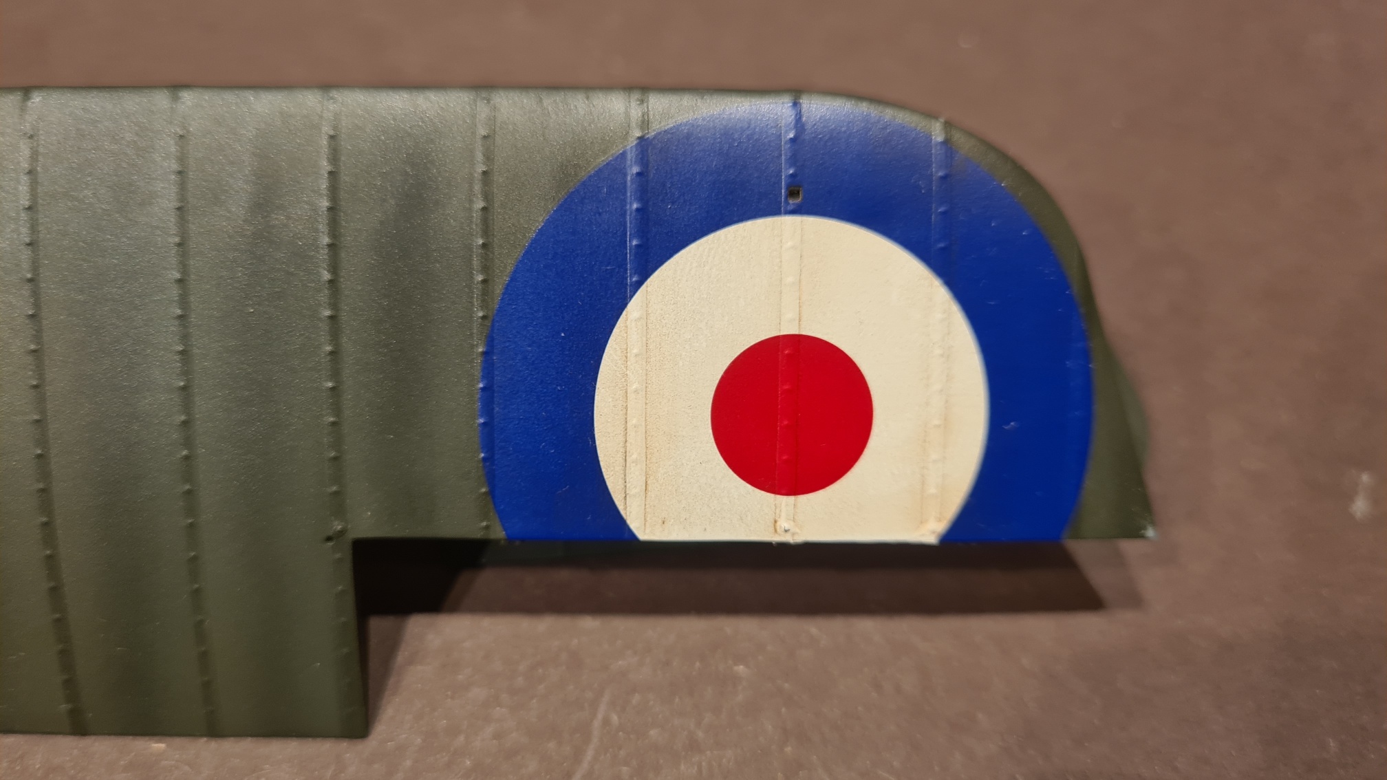 Inzwischen habe ich insbesondere die hellen Flügelunterseiten mit Ölfarbe (braun und schwarz) bearbeitet. Sieht jetzt hoffentlich ganz brauchbar aus. Ein bißchen verwittert und gebraucht aber nicht zu sehr.