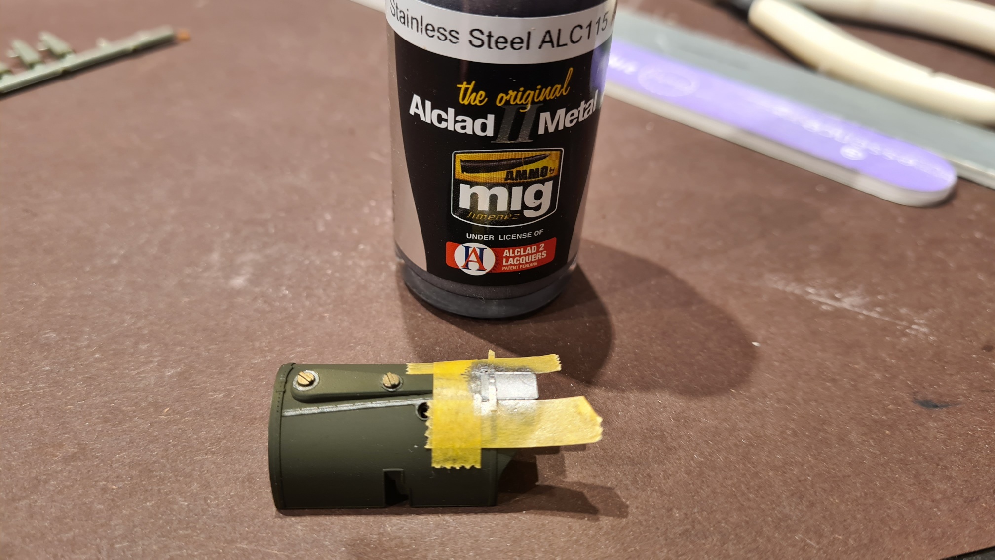 Tank abkleben und dann mit Alclad 2 Messing gesprüht
