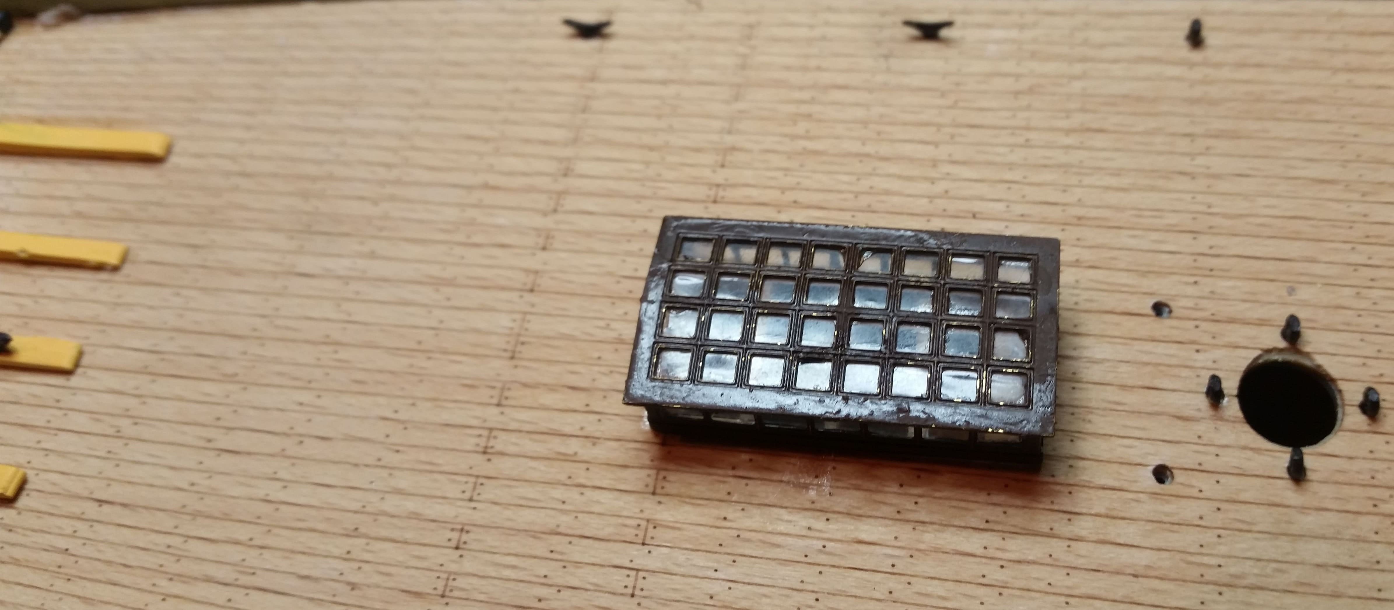 Jetzt habe ich gerade beim Durchsehen der Ätzteile bemerkt, daß am vorderen Schott noch Ätzteile für die Türen und Fenster vorhanden sind.