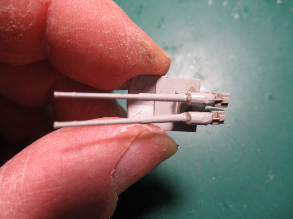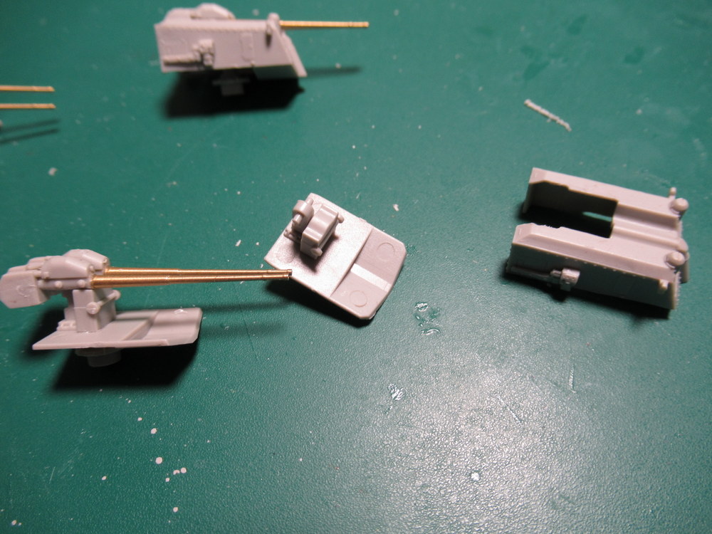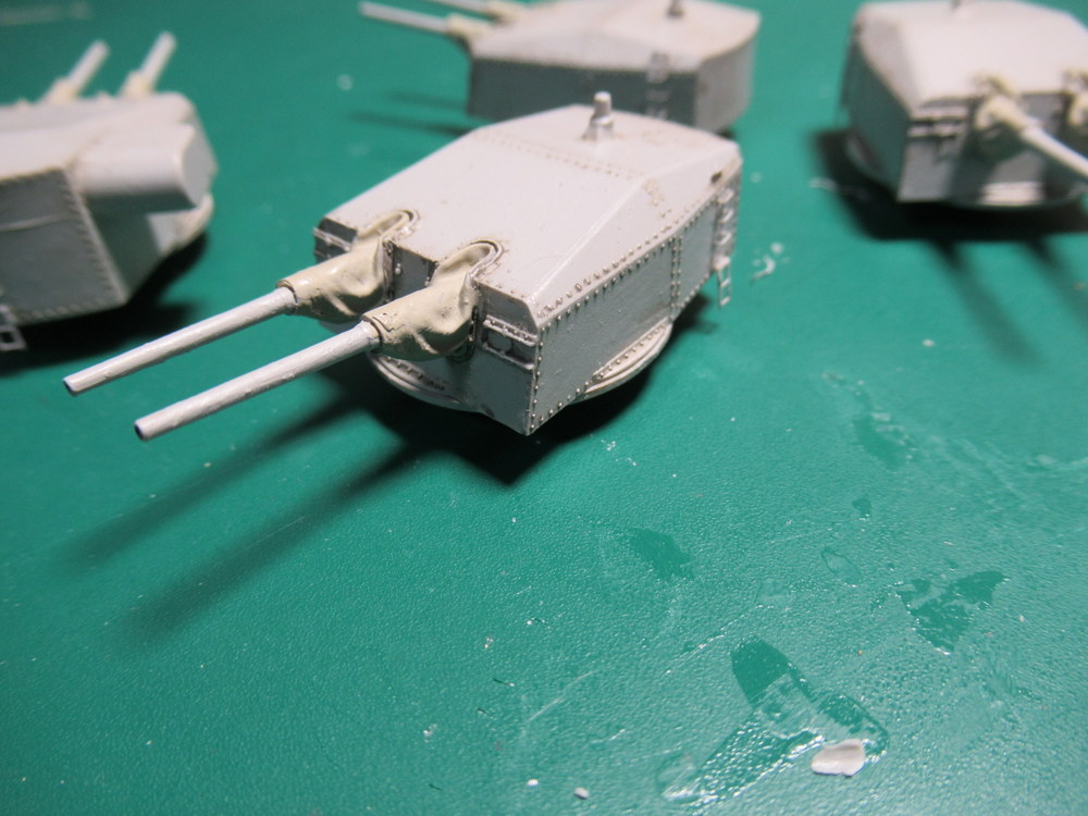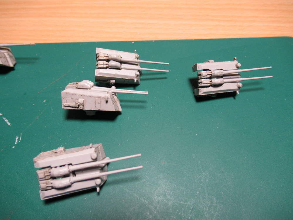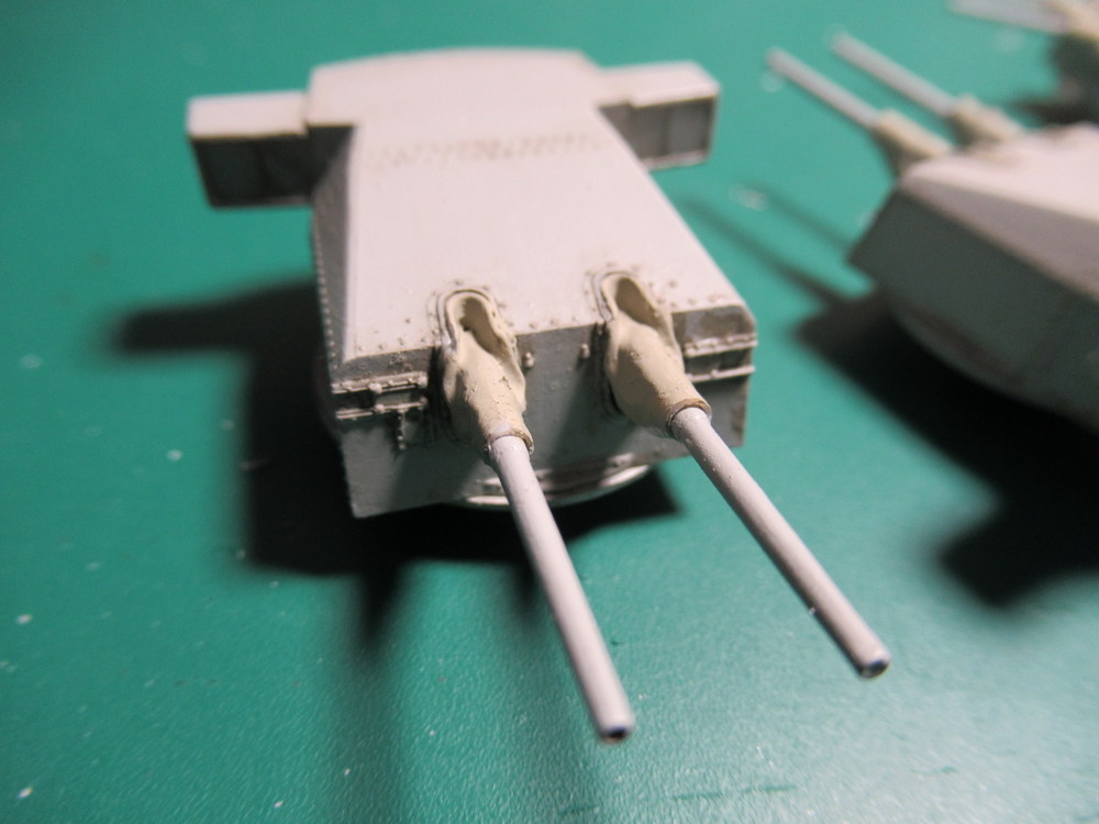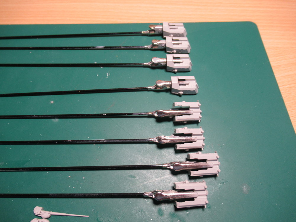 Dann die fertig gebrushten Geschütze . Als nächstes wurden den Geschützrohren dann die Hosen angezogen