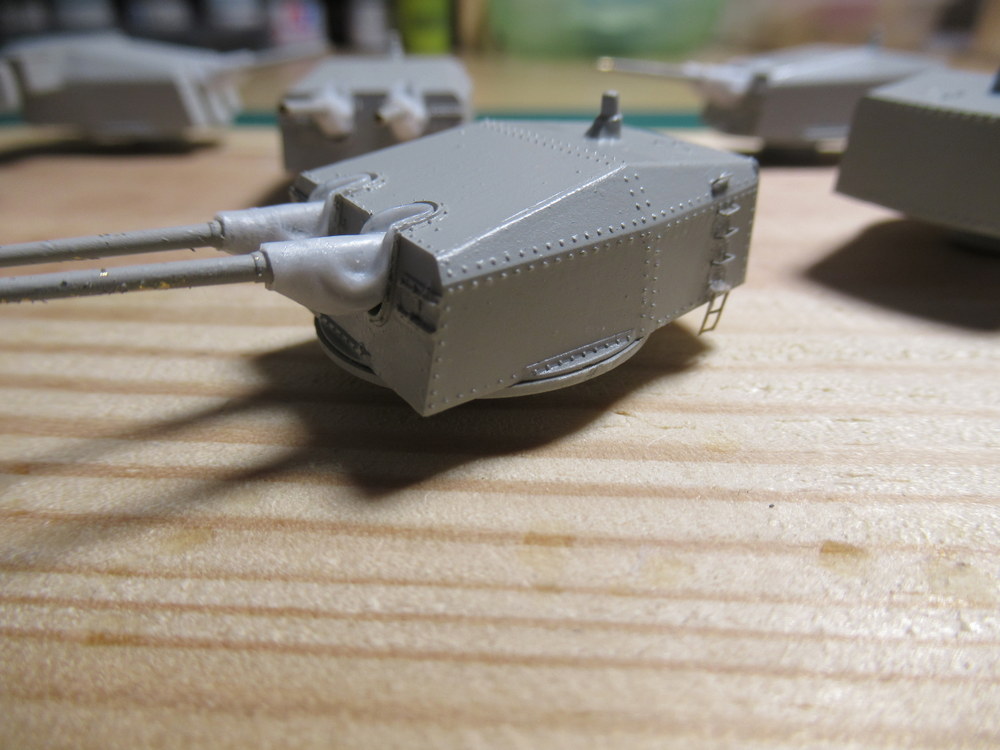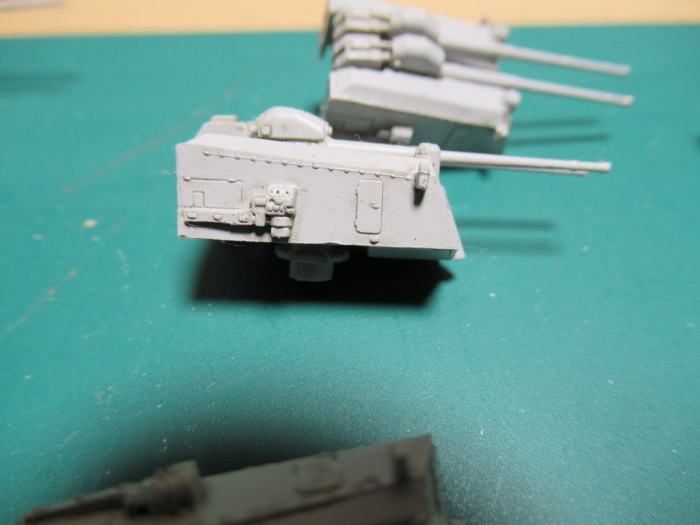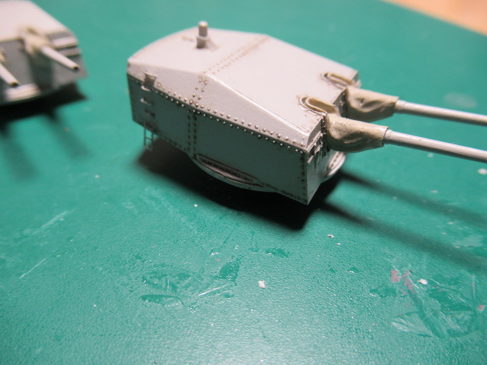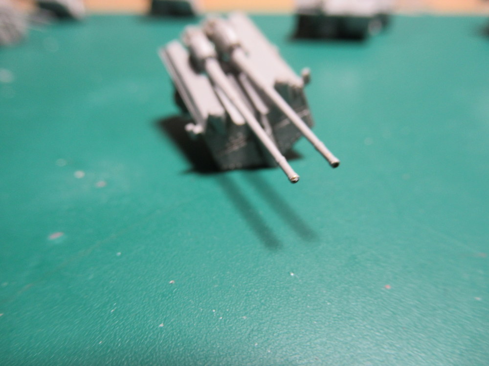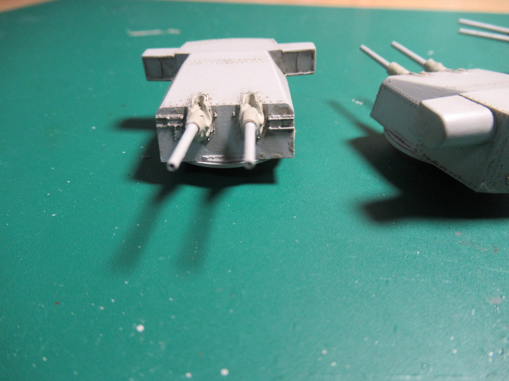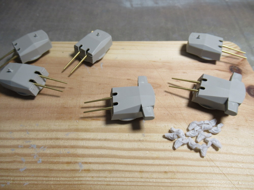 Dann die fertig gebrushten Geschütze . Als nächstes wurden den Geschützrohren dann die Hosen angezogen