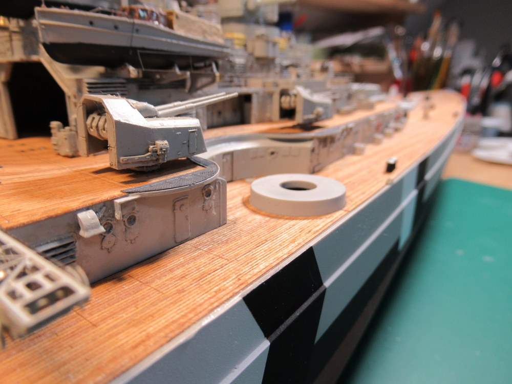 Jetzt wo ich wieder Bock hab gehts auch mit der Bismarck recht zügig vorran, zumal ich die auch langsam mal vom Tisch haben möchte um Platz für was neues zu haben . Bisher schätze ich die Bauzeit für die Bismarck auf 705 bis 750 Std .