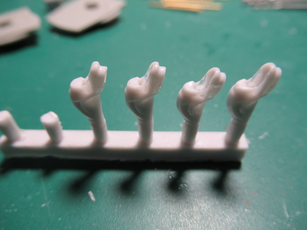 Heut morgen bin ich dann angefangen und habe die Geschütze zusammen gebaut . Nach dem Frühstück gings dann an die Ätzteile . Wenn ich eins hasse , dann die Handläufe .