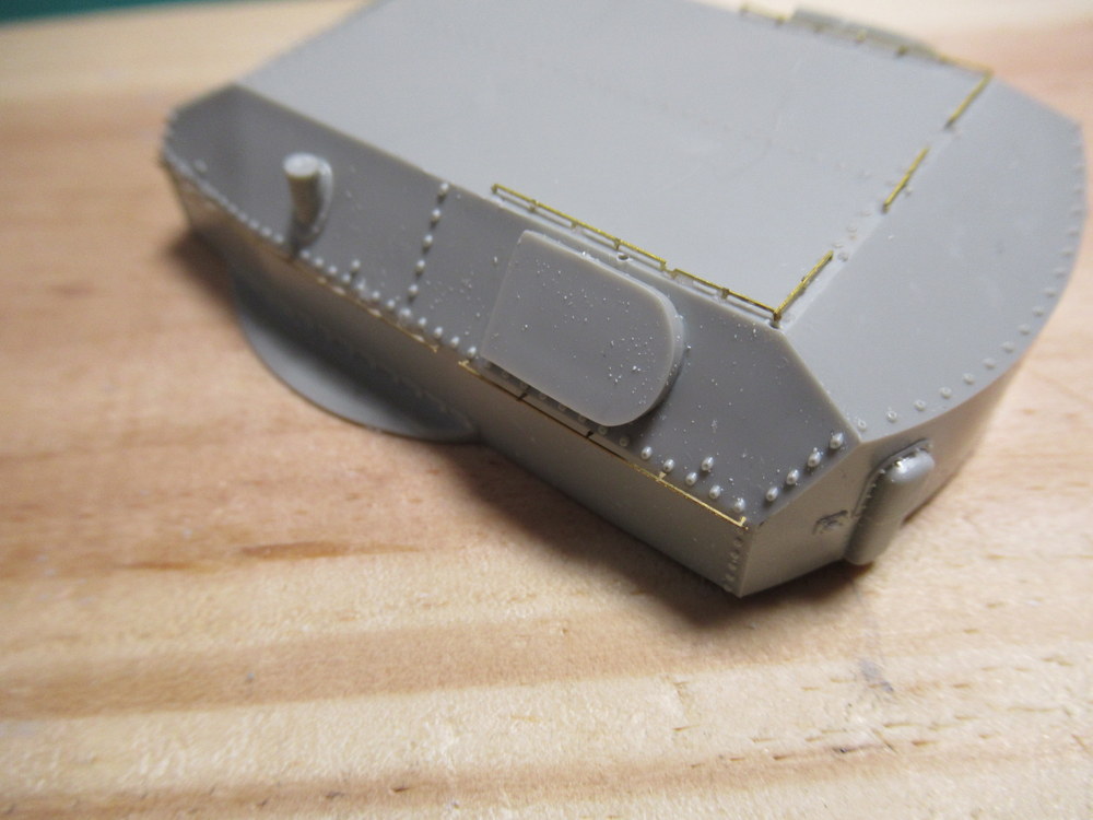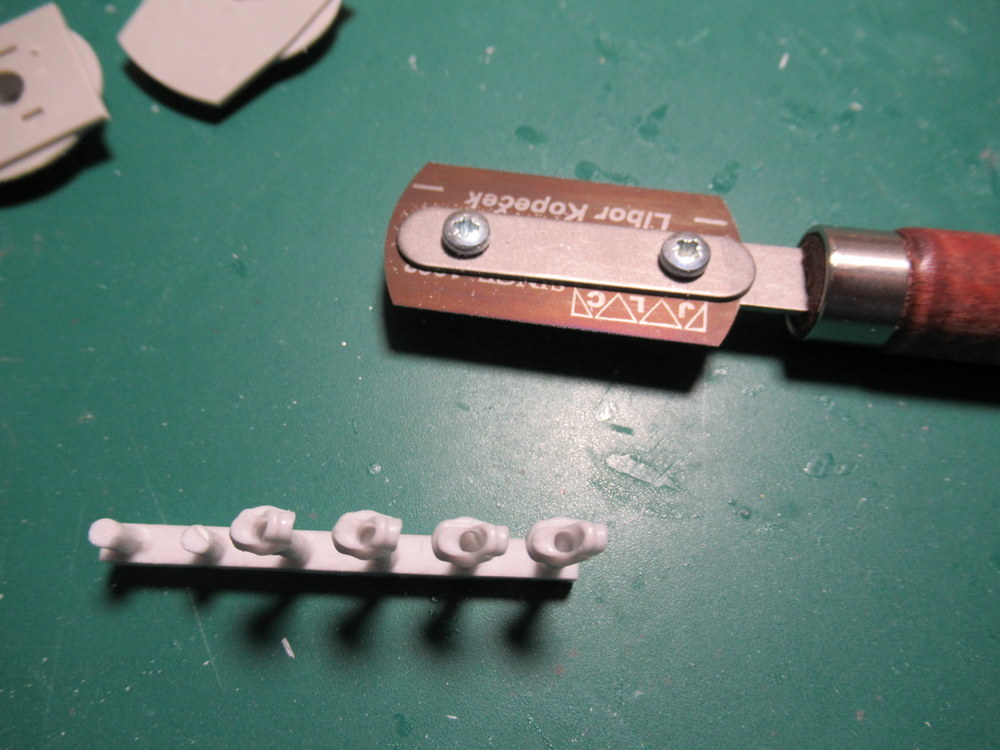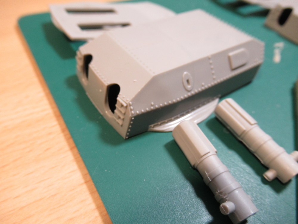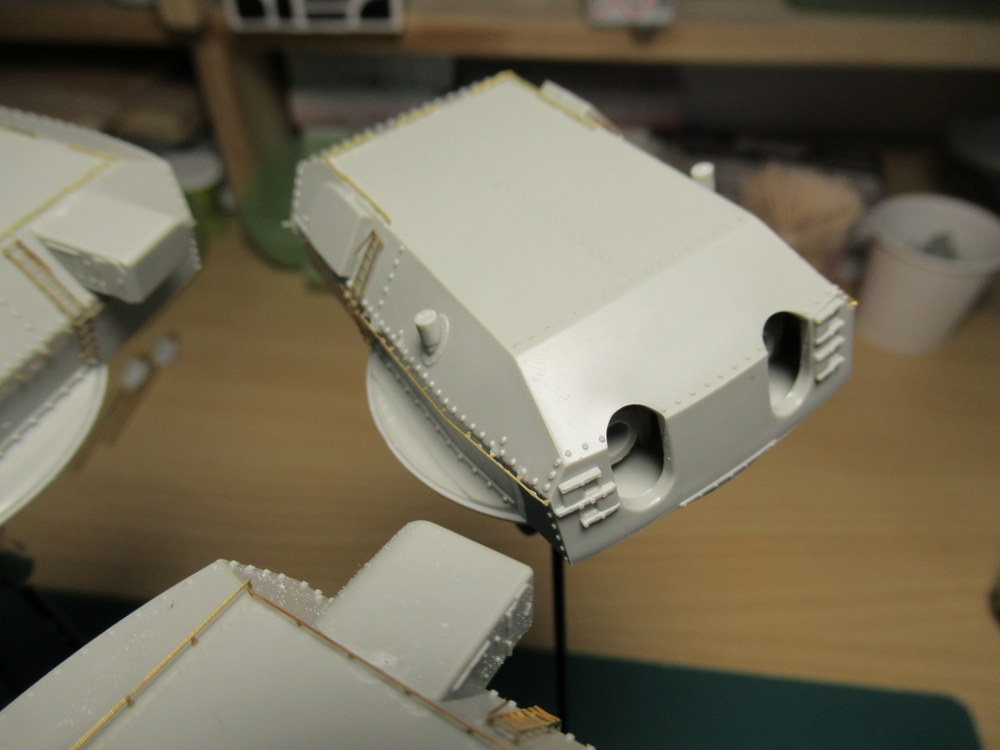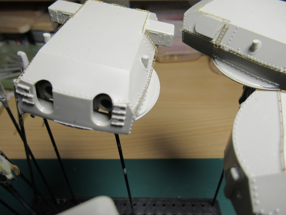 Die Geschütze 1 und 3 sollten oben mit einer Schablone 0,3 mm Löcher bekommen . Das war relativ einfach .