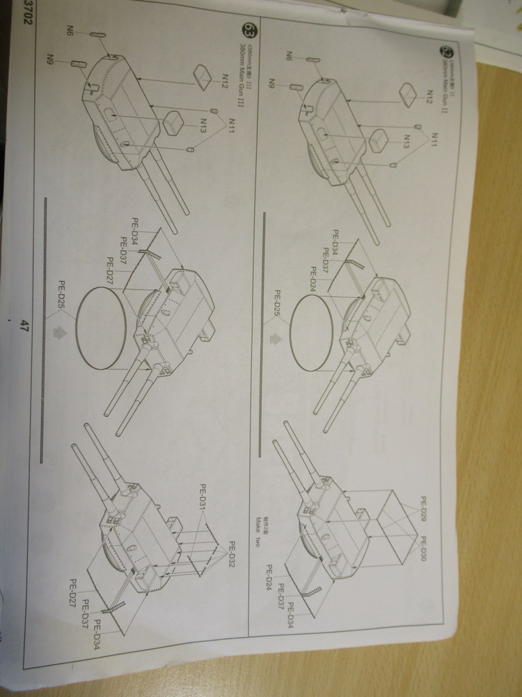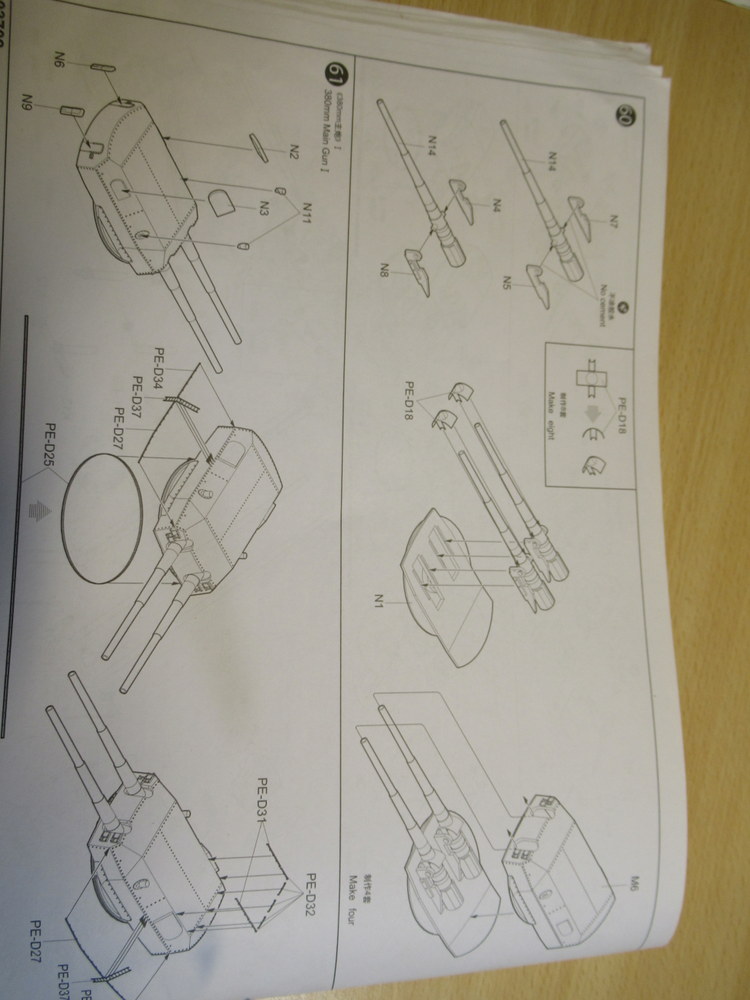 so es geht an die Hauptgeschütze der Bismarck .Der Bauplan und der Ätzteilplan .