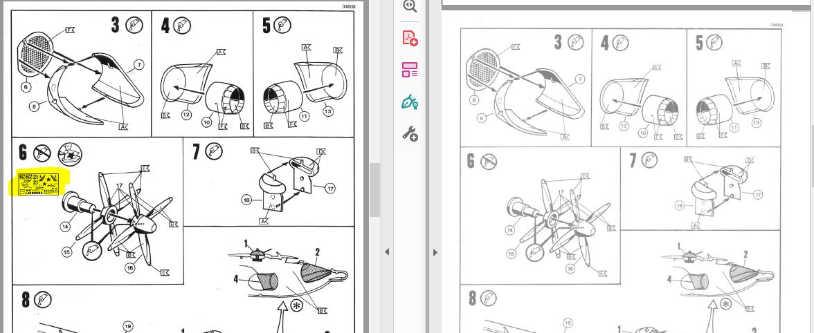Interessant ist, dass bei Revell im Bauschritt 6 schon Decals aufgebracht werden. Bei Zvezda nicht. Die Decalanleitung am Ende der Bauanleitung ist aber identisch.