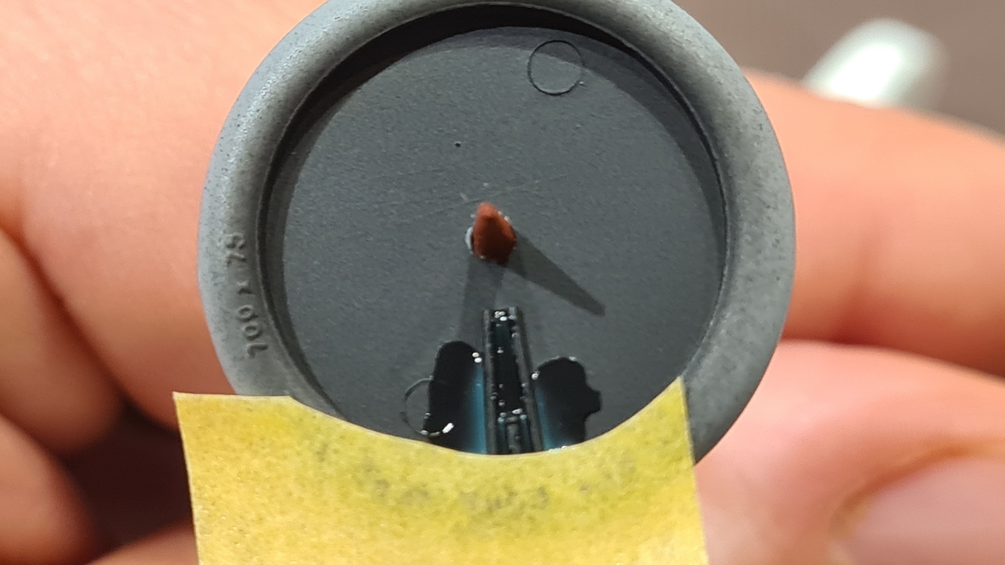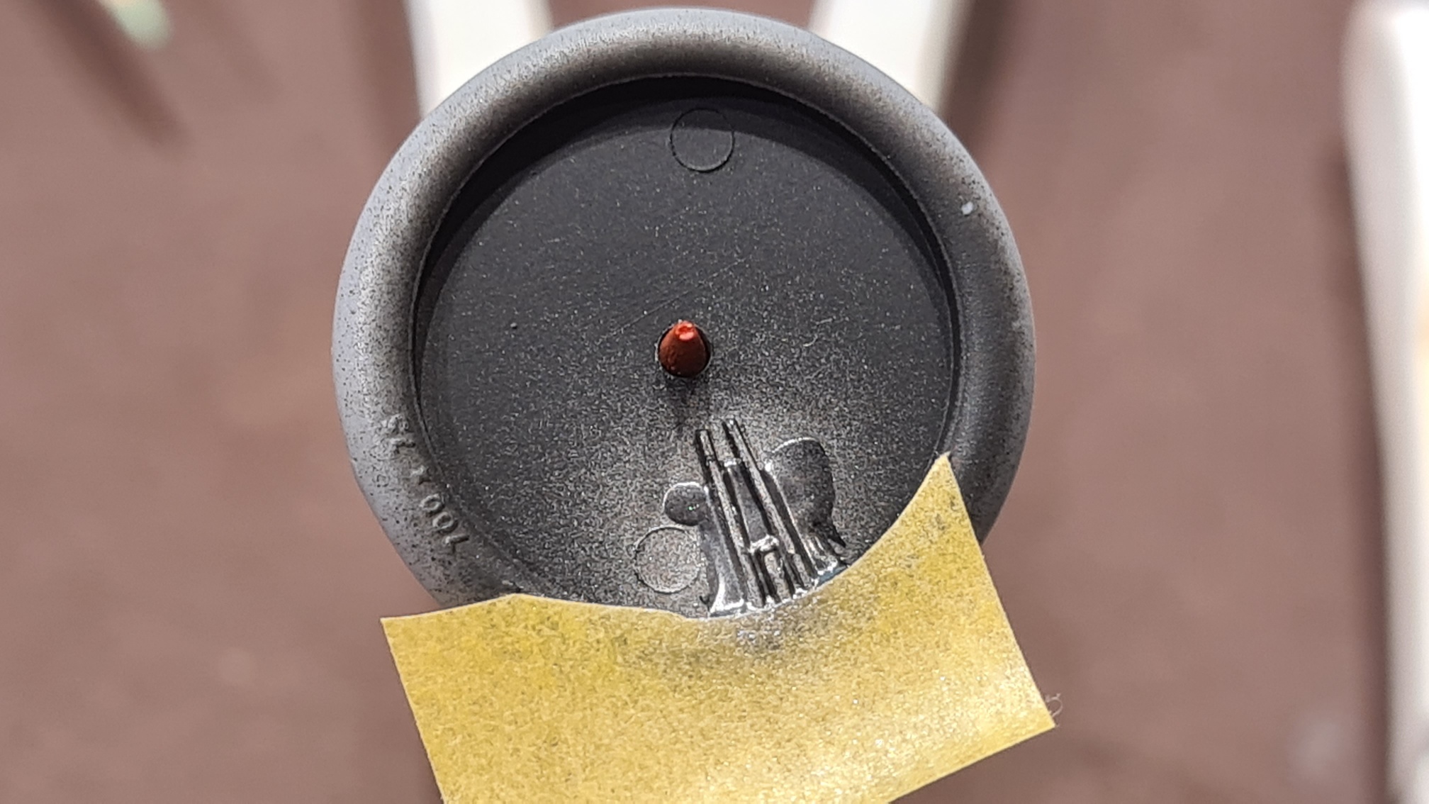 Soweit bis gestern. Heute kamen dann die Reifen dran. Für die Flache Seite lagen dem Super-Duper-Ergänzungsset Masken bei. Für die Außenseiten leider nicht. Hier mein Trick, um trotzdem eine kreisrunde Abdeckung zu bekommen: