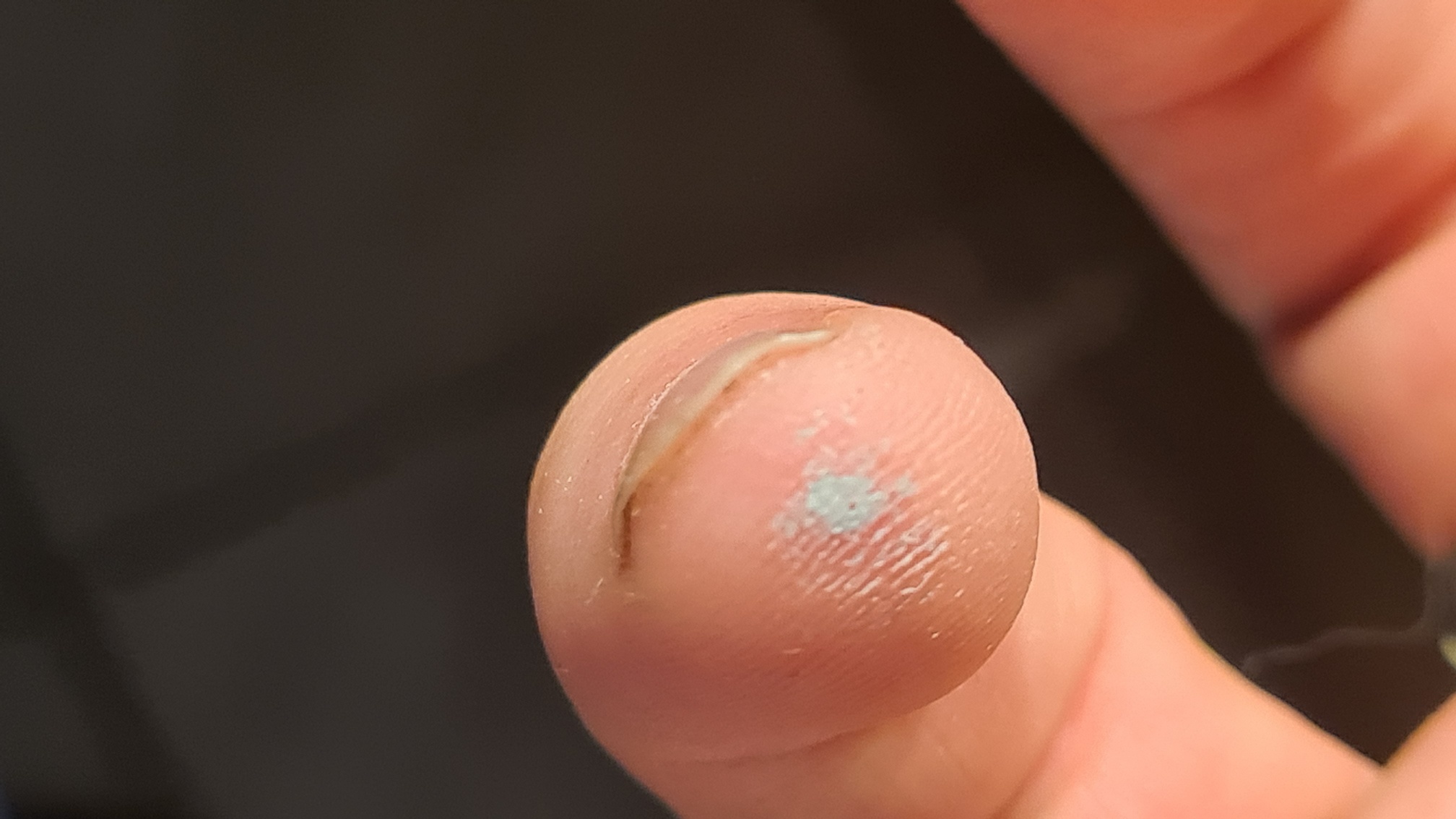 BITTE KEINE GANZEN TROPFEN!!!! Nur wirklich eine geringe Menge, die aber noch nicht trocken sein darf. Und in der Fingerkuppe hat man dann ausreichend Kontrolle, um es über die erhabenen Buchstaben zu schmieren. Es muss nicht perfekt sein. Wichtig ist, dass die Farbe nicht neben den Buchstaben landet. Es brauchen aber nicht alle Buchstaben perfekt leuchten, wird ohnehin noch verdreckt.