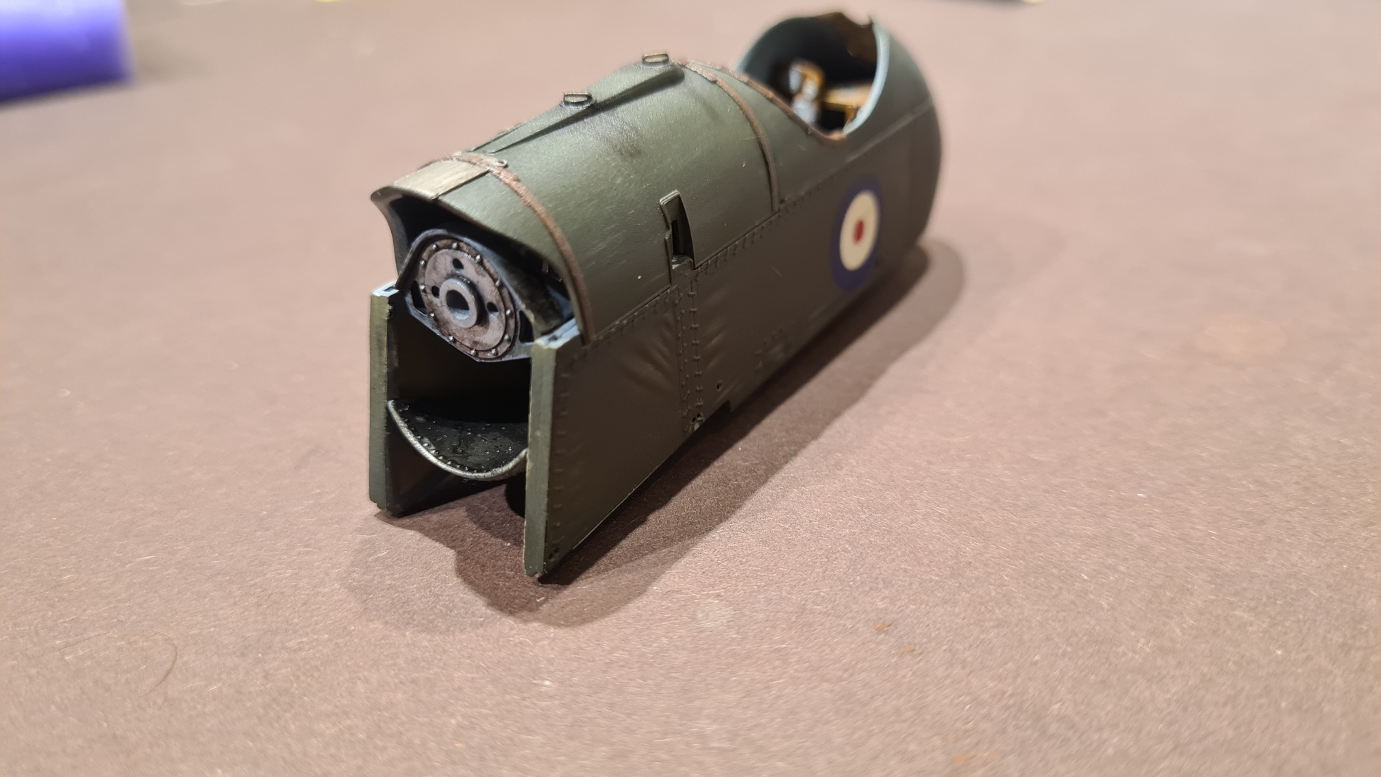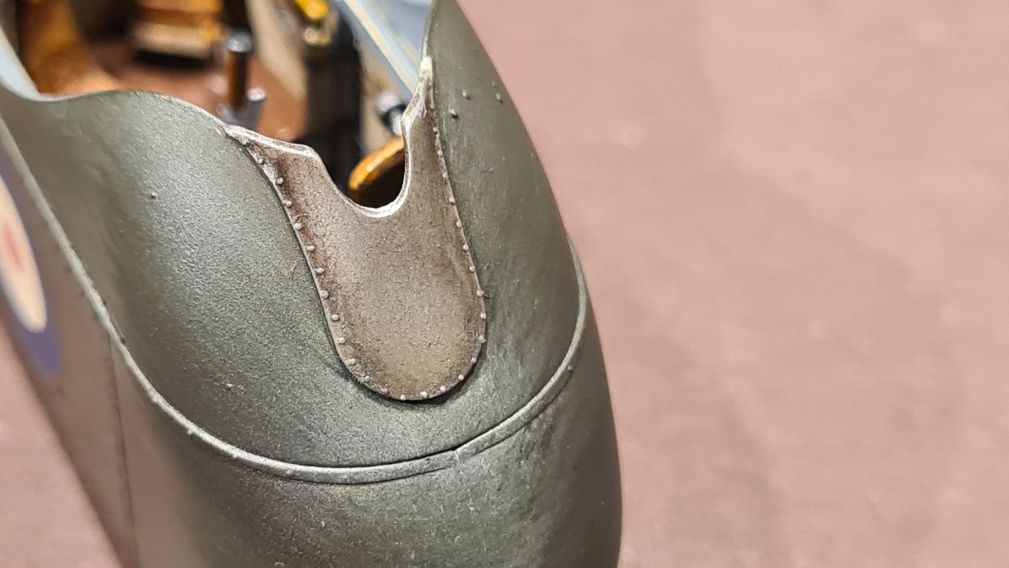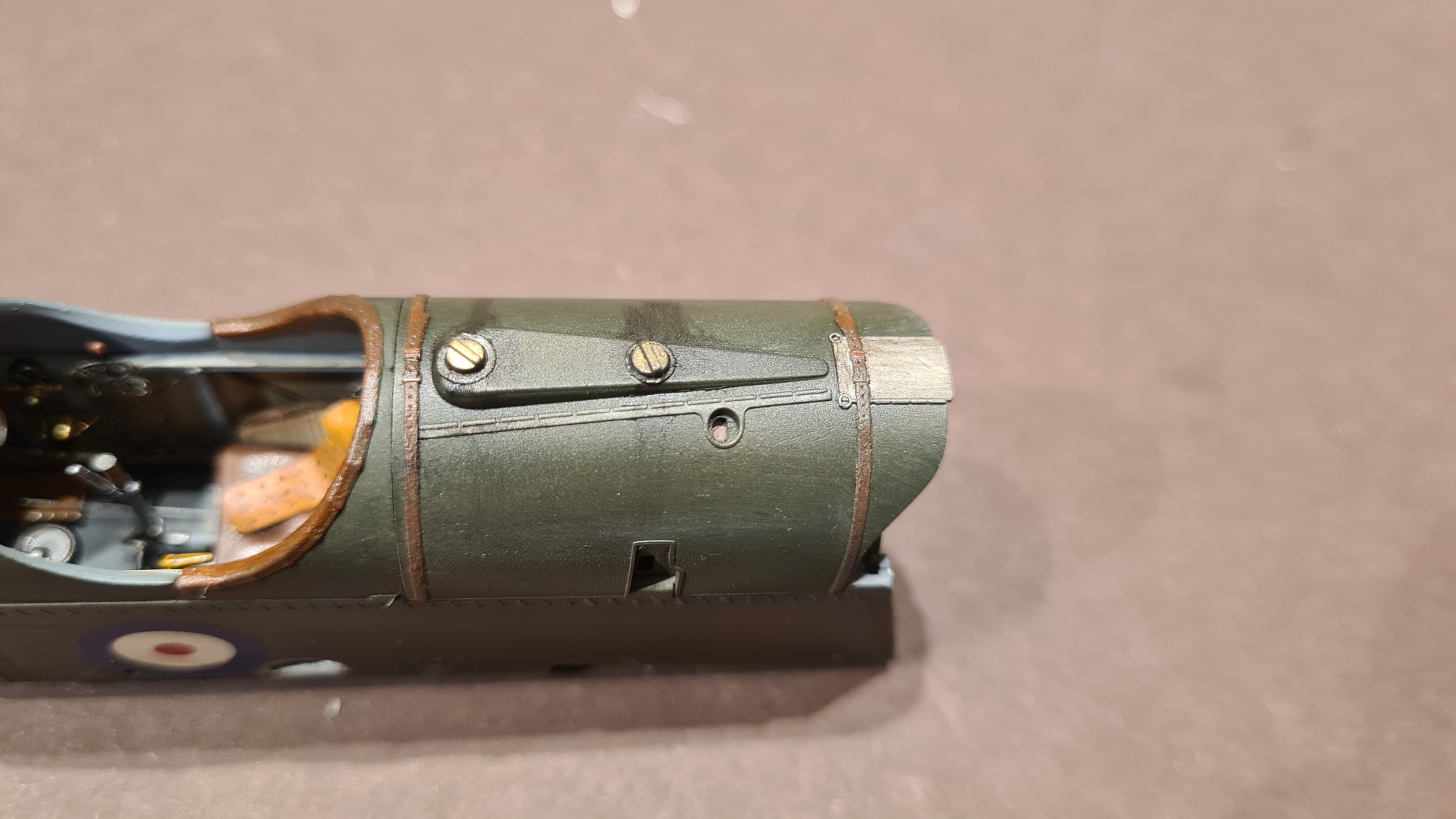 Überhaupt wurde die ganze Gondel mit Ölfarben etwas abgenutzt gestaltet. An den Einfüllstutzen ist etwas Öl und Treibstoff danebengelaufen