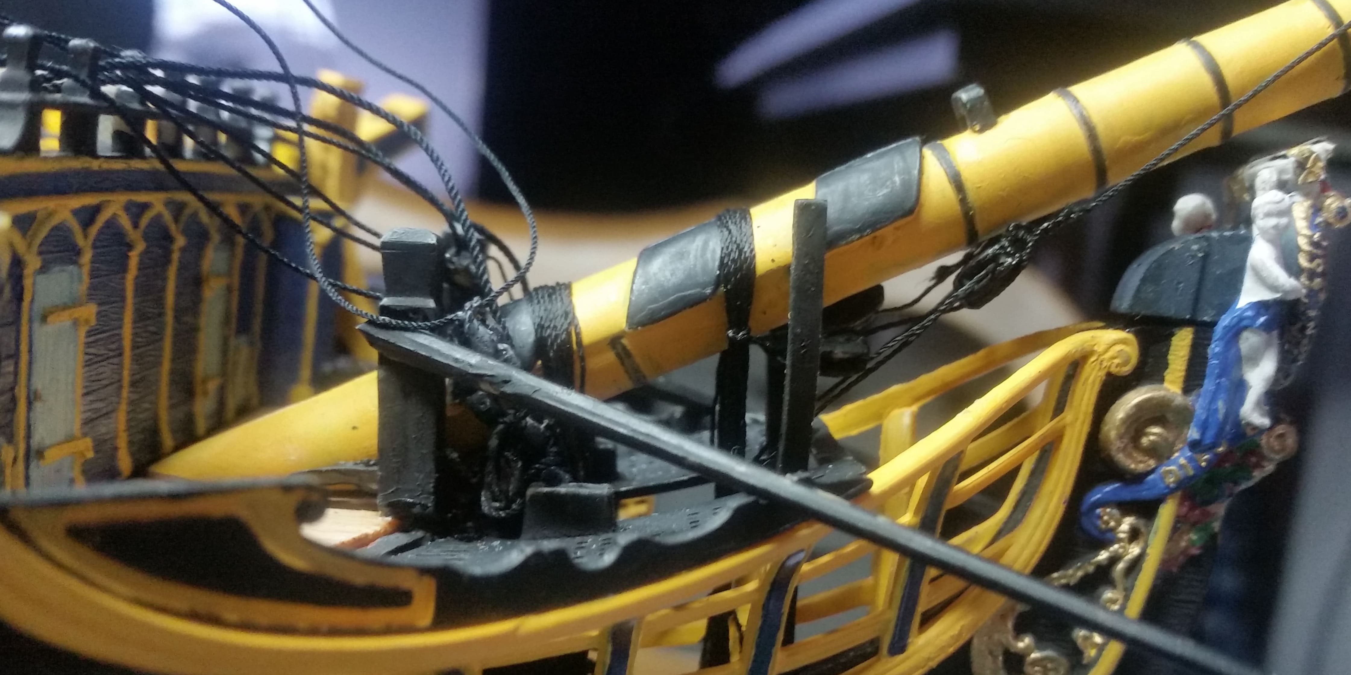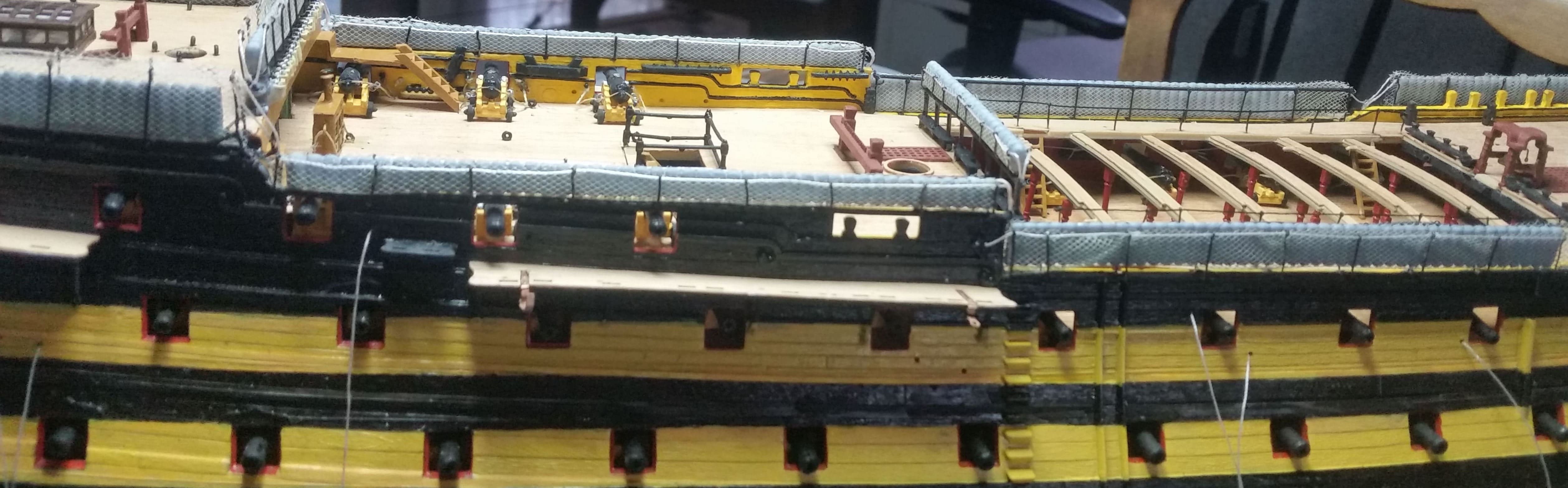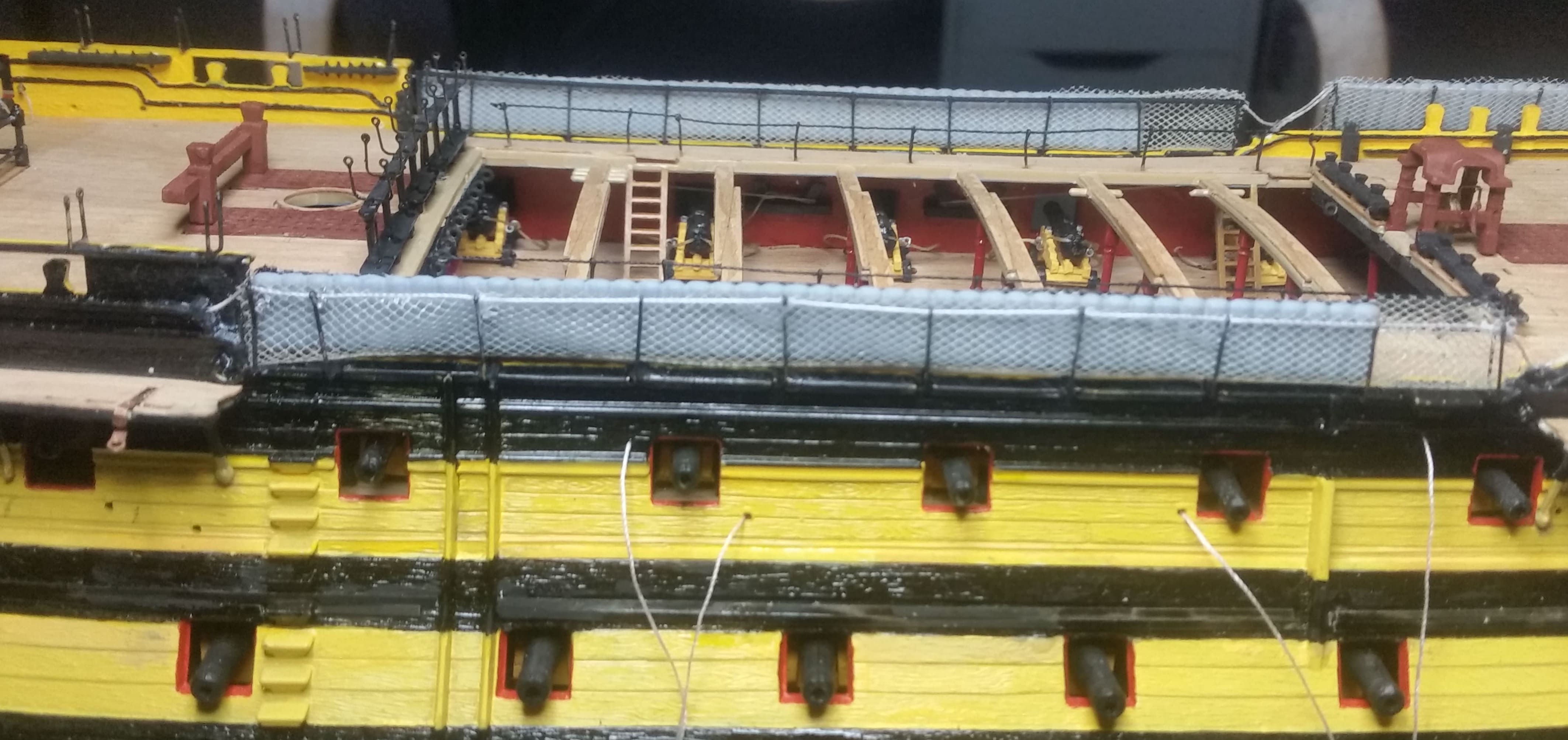 Auf der Steuerbordseite werde ich dann ein großes und ein kleines Netz getrennt legen. Dann die Hängematten bemalen und reinlegen.