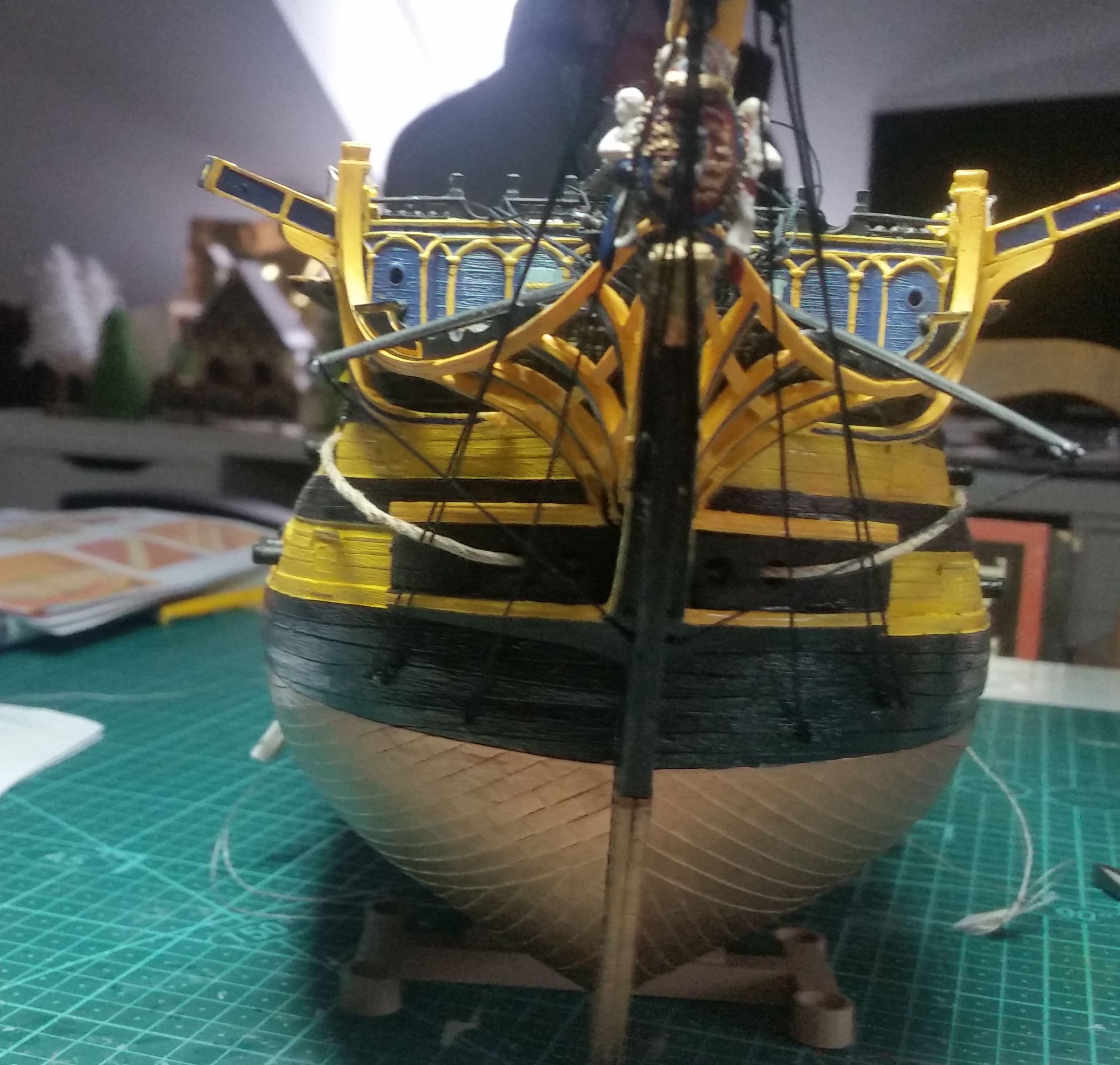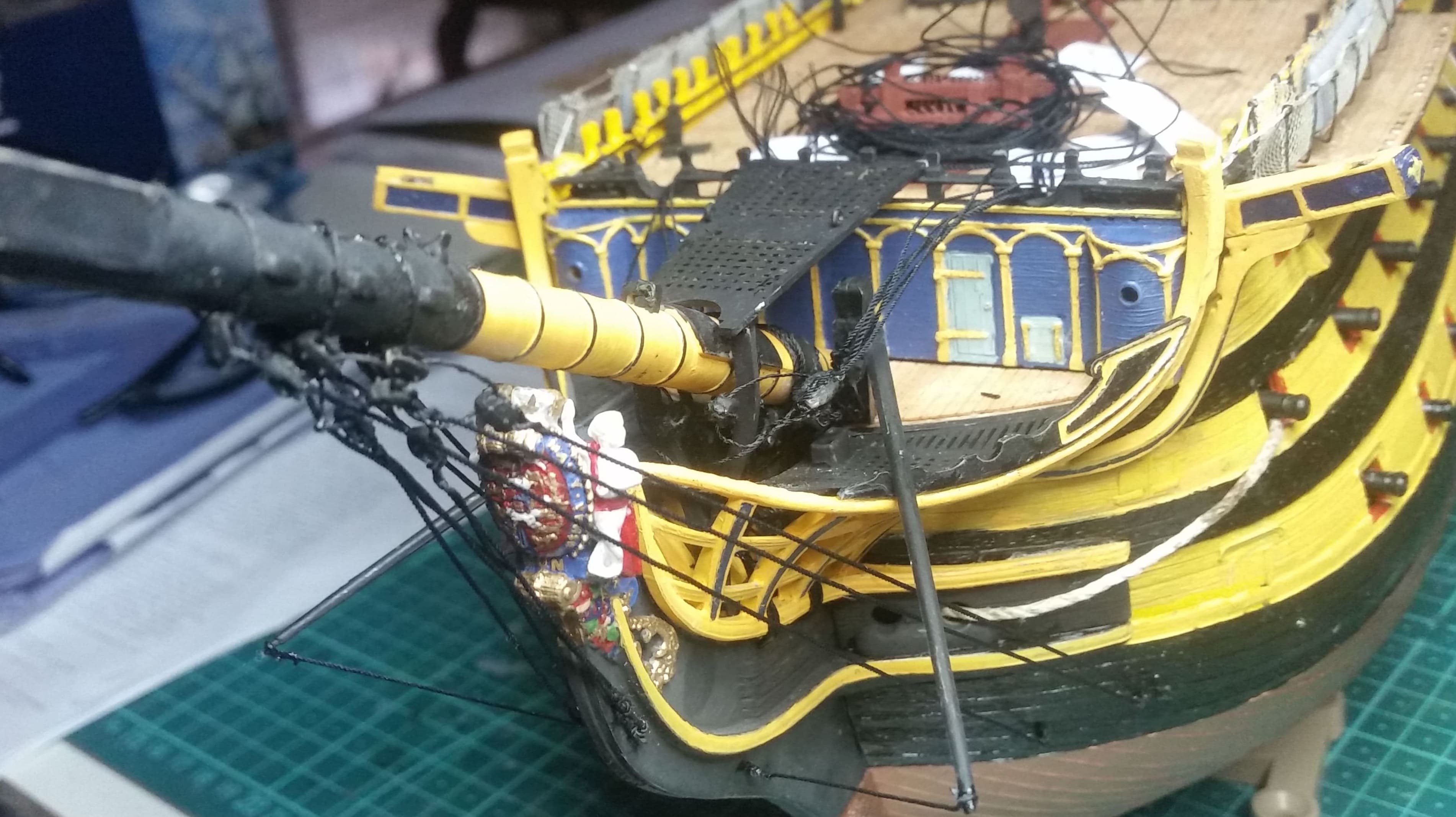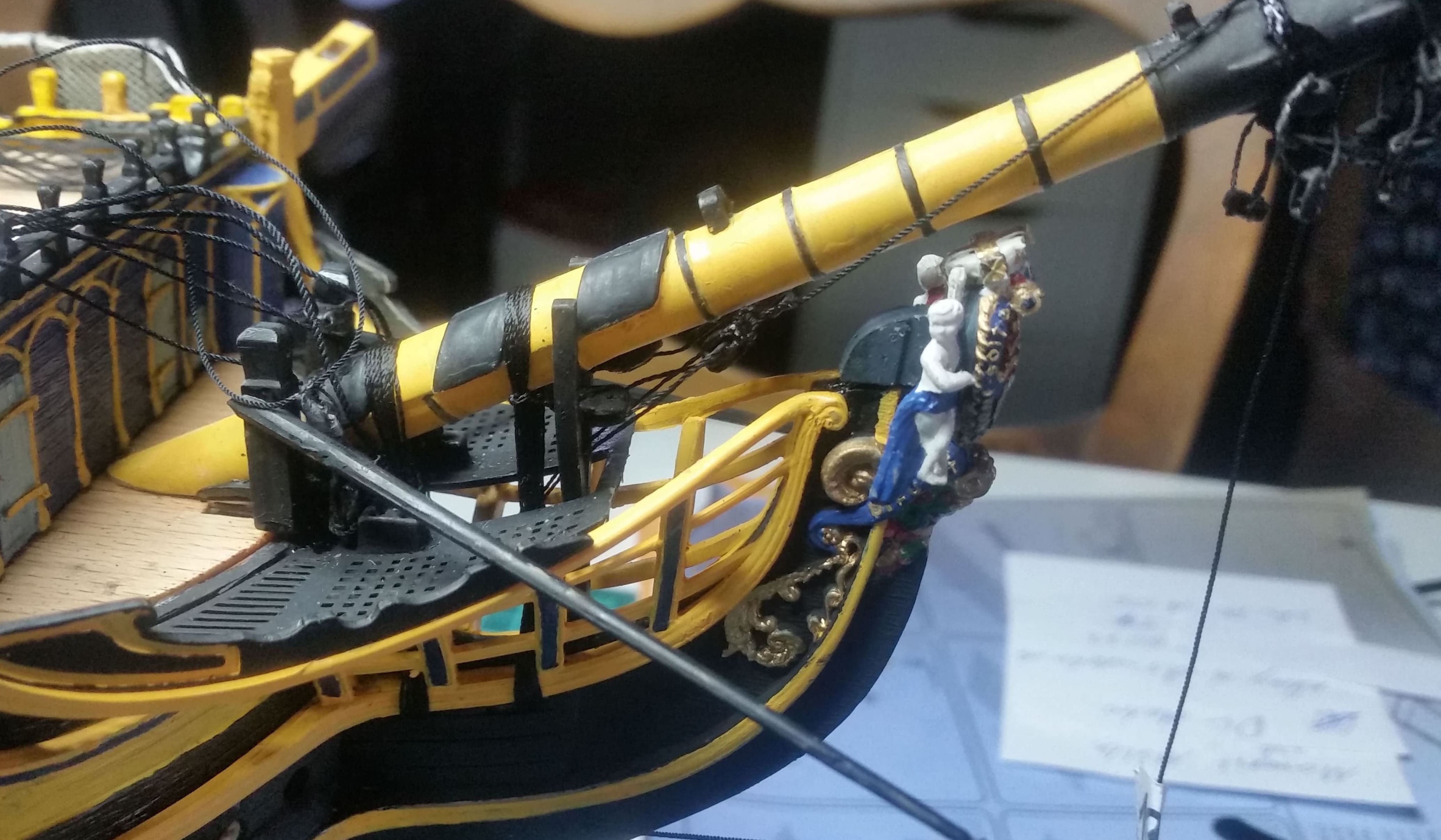 Erst zu spät habe ich dann gesehen, daß vorne ein Ausschnitt frei bleibt, da dort die Karronade plaziert wird.