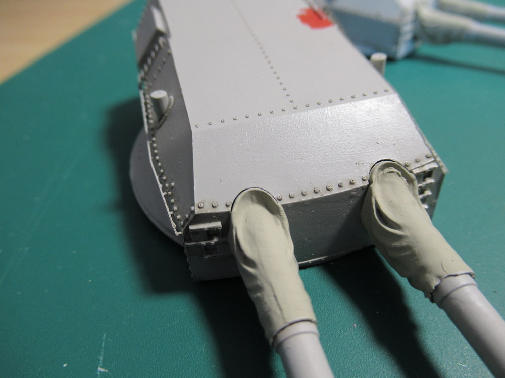 Einige werden sich jetzt fragen , hey was macht der Rote Fleck auf dem vorderen Geschütz. Ist der jetzt Farbenblind