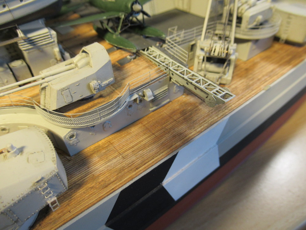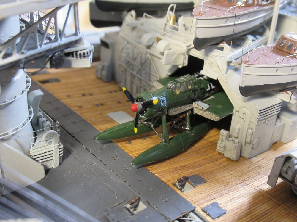 so ... ich hatte überlegt was ich den jetzt so in Angriff nehme . Da viel mir ein , dass ich ja auch noch die Boardflugzeuge bauen muss. 4 ARDO 196 Gehörten auf die Bismarck . Ich habe einen Hangar wie auch den Werkstatthangar offen gebaut. Hier soll jeweils 1 Flugzeug sichtbar sein .