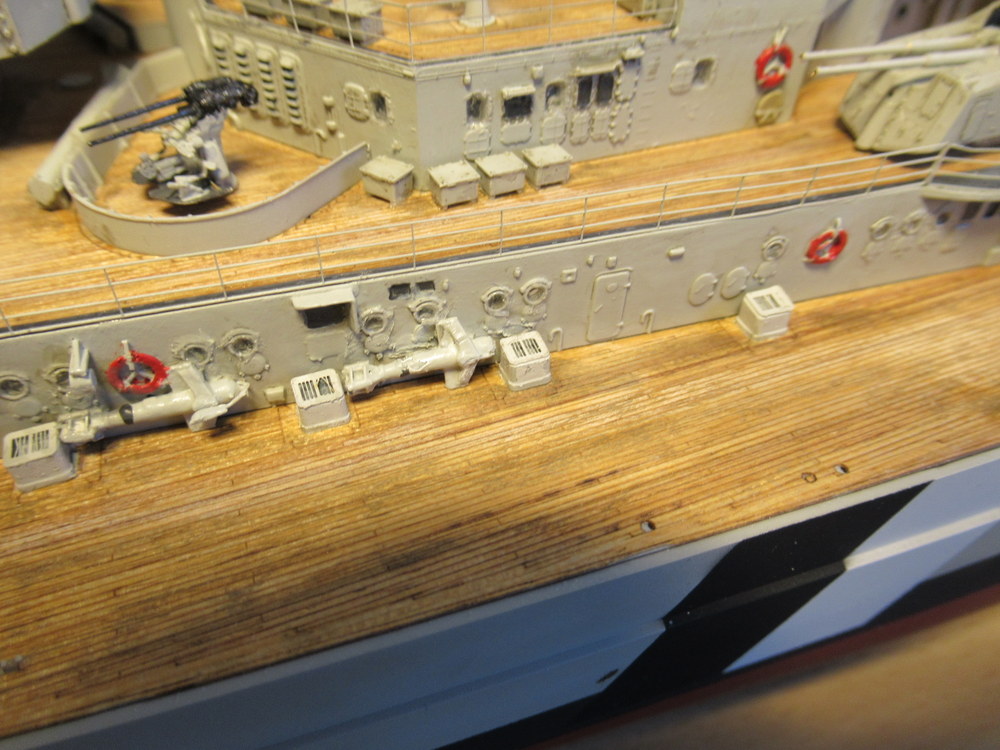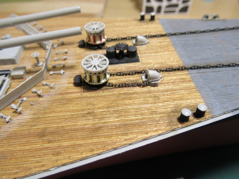 Dann ja auch noch die Anker . Bevor diese aber angebracht werden haben wir ja auch noch die Flugkennung an Bug und Heck . Also noch eine Menge zu erledigen