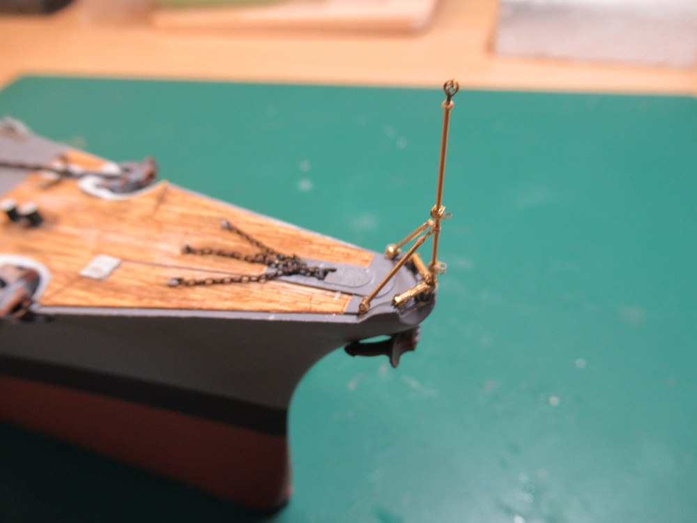 Als eines der Letzten Schritte kommt ja die Aussenreeling dran . Damit diese angebaut werden kann muss ich die Masten an Bug und heck bauen ... vorher aber der Einfachheit halber die Anker inkl. der Ketten anbringen .