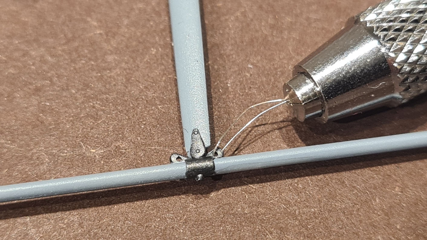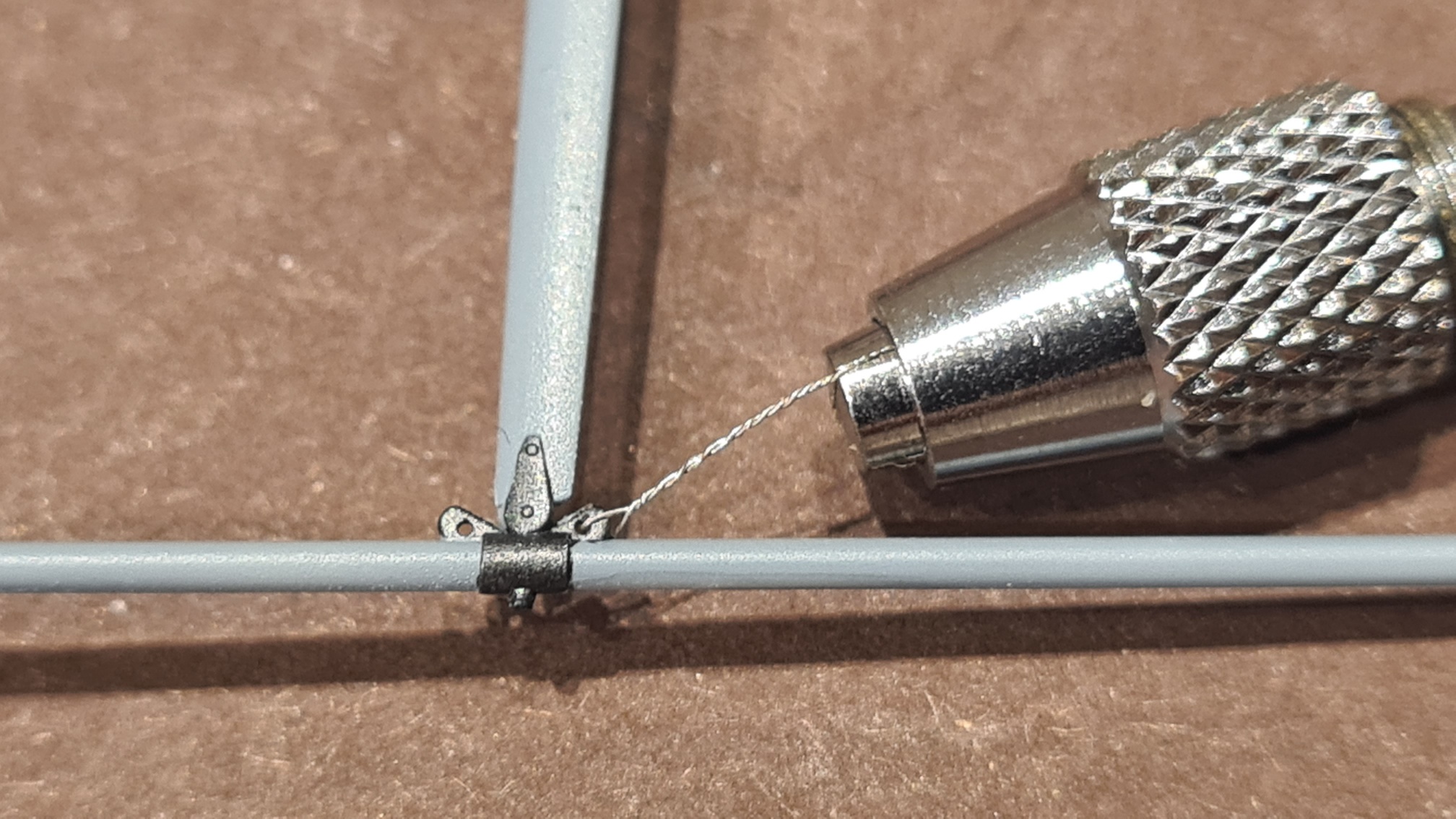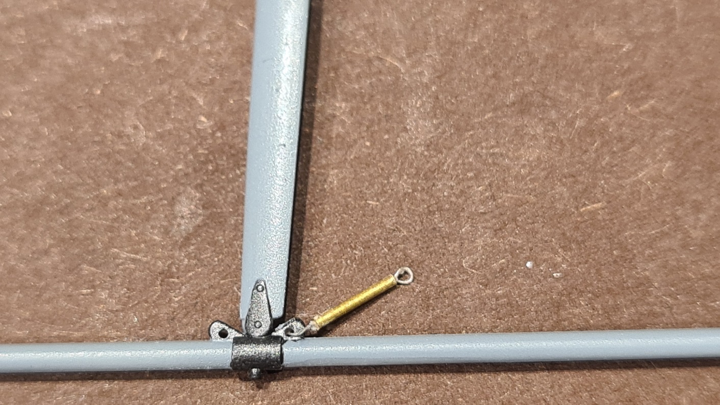 Im Rahmen gibt es Löcher, da müssen die Spannschlösser rein. Mit vorgefertigten Gaspatch-Schlössern klappt das natürlich nicht. Für diese Fälle bastele ich bei diesem Flugzeug die Schlösser wieder selbst. Hier einmal wirklich Schritt für Schritt: