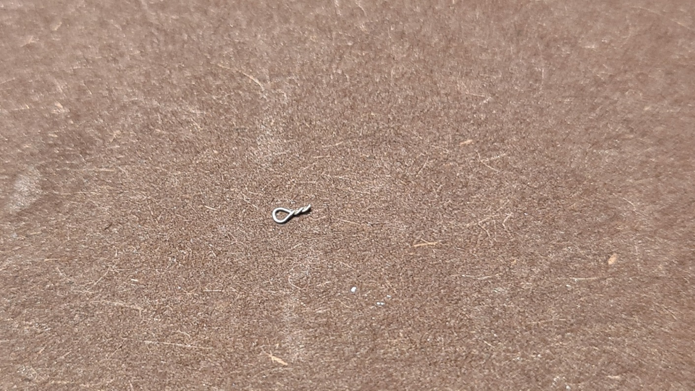 Einen sehr dünnen Draht (hier einzeln aus einem uralten Monitorkabel) durch die Öse gesteckt: