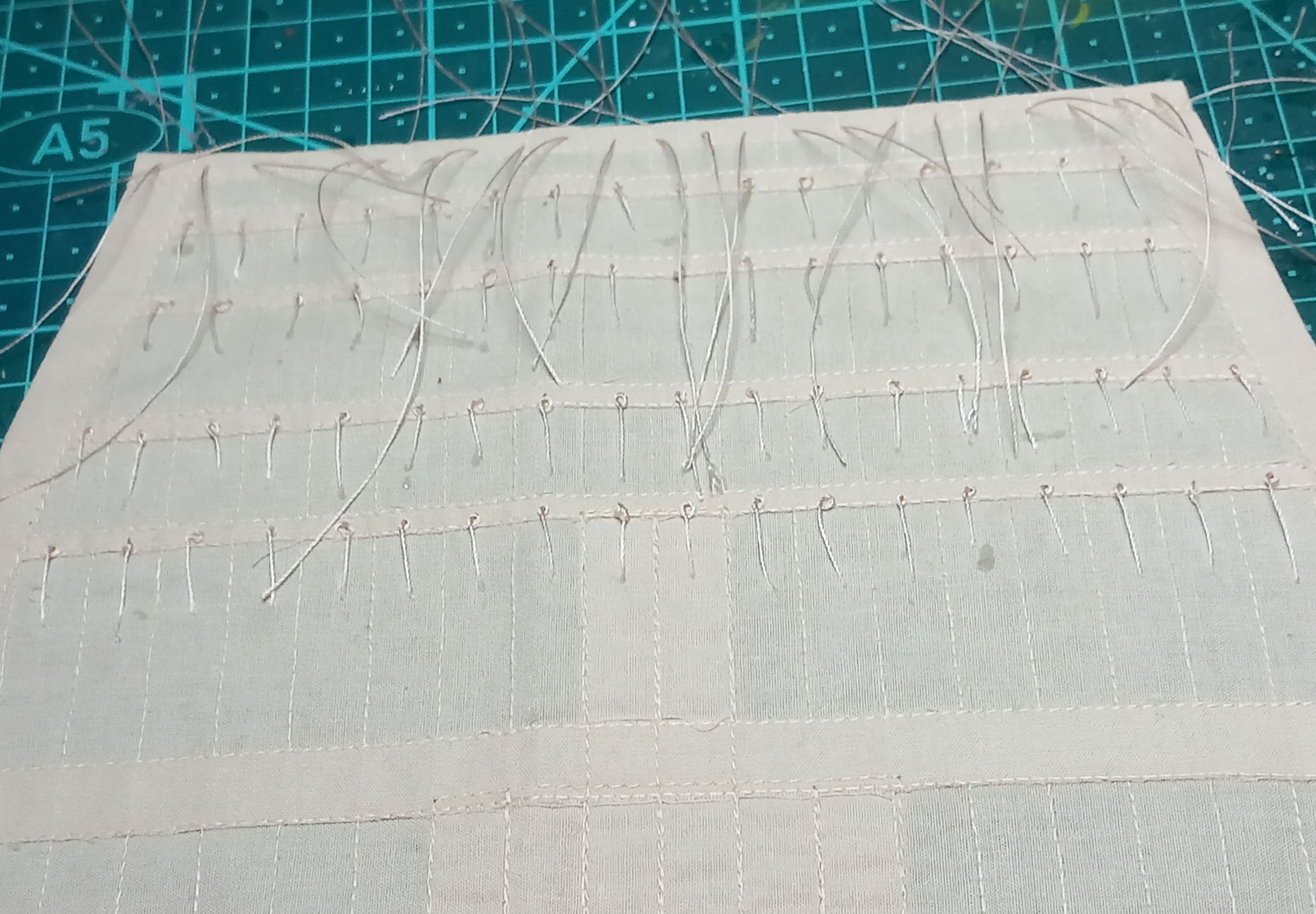 Ein Tau muss eigentlich von der Rahnock runter an die Segelecke, wieder rauf zur Rah um dann nach innen zum Mast zu kommen und dann runter an Deck=Geitau.