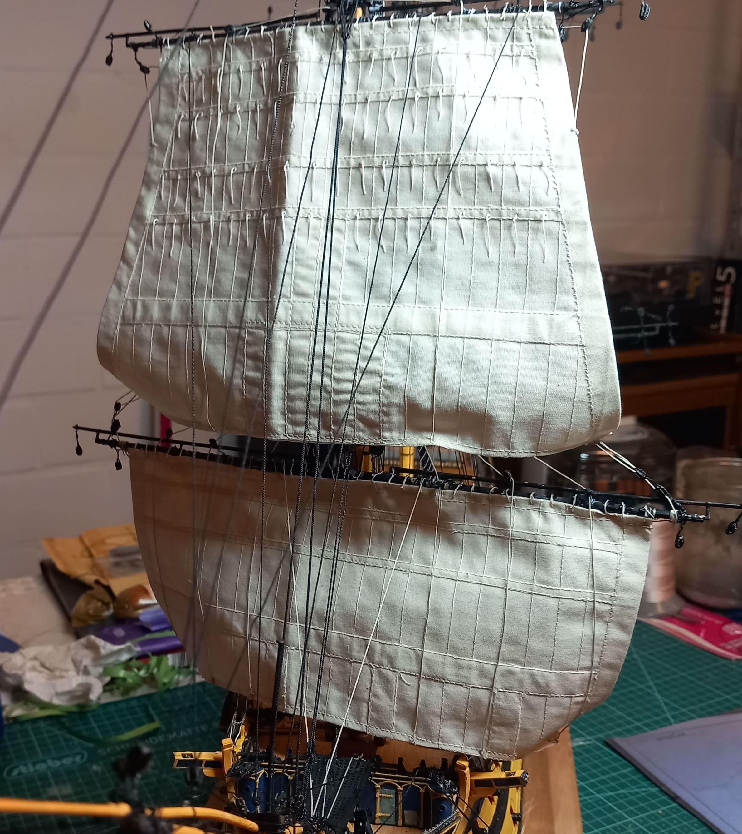 Das sieht ehrlich gesagt merkwürdig aus. Ist das so im "guten" Takelplan von Heller gezeigt?