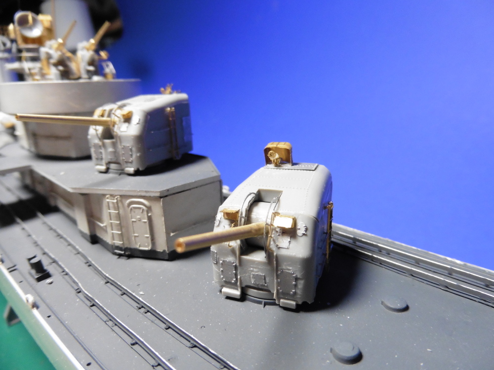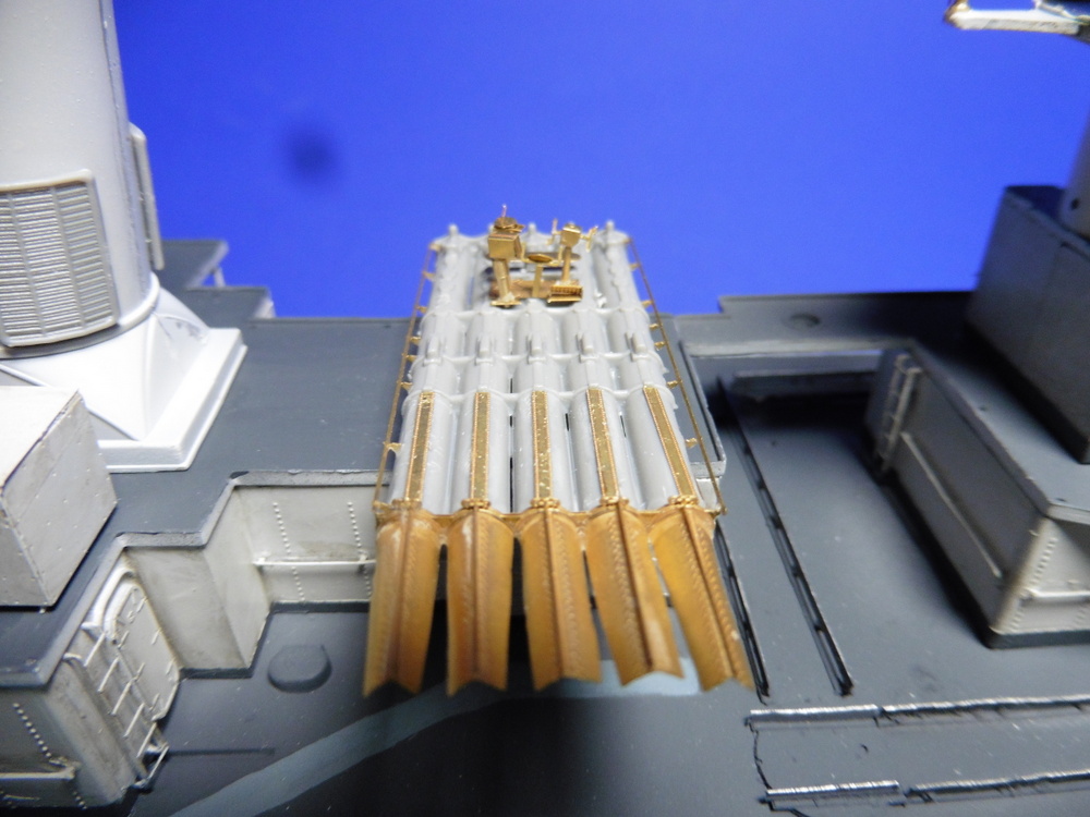 So und nun geht es mit den verschiedenen Geschützen sowie der Tropedoanlage weiter . Ist ja nicht so , dass ich keine Ätzteile mehr hätte die verbaut werden wollen