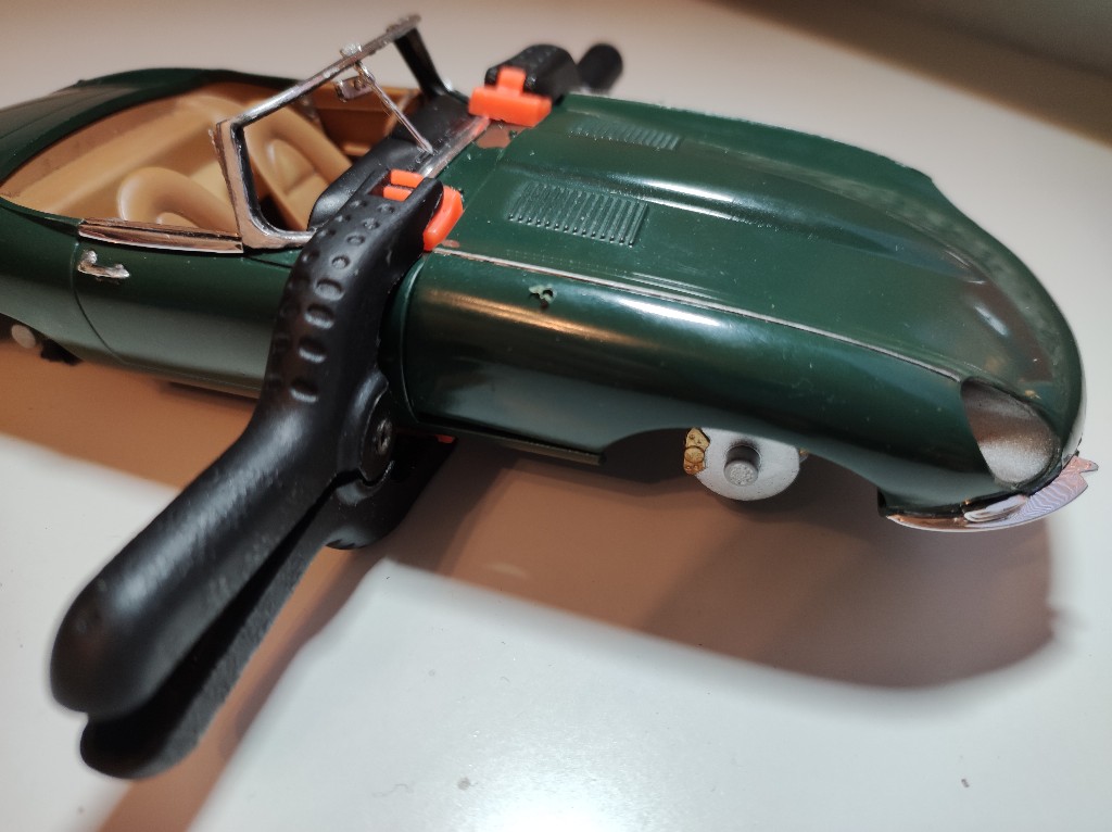 Im Ergebnis sind die Scheinwerfer nun dran und die Motorhaube so gut wie fertig
