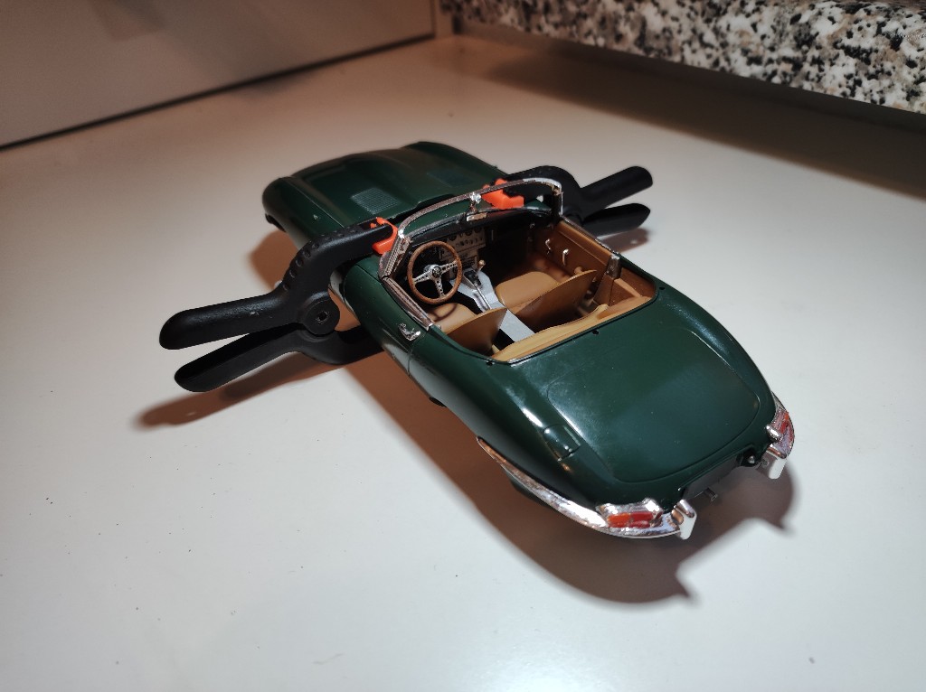 Es fehlten nun noch die Frontscheibe und die Seitenspiegel, welche nun auch ihren Platz fanden und natürlich das Verdeck. Auch die vorderen Zierleisten sind angebracht