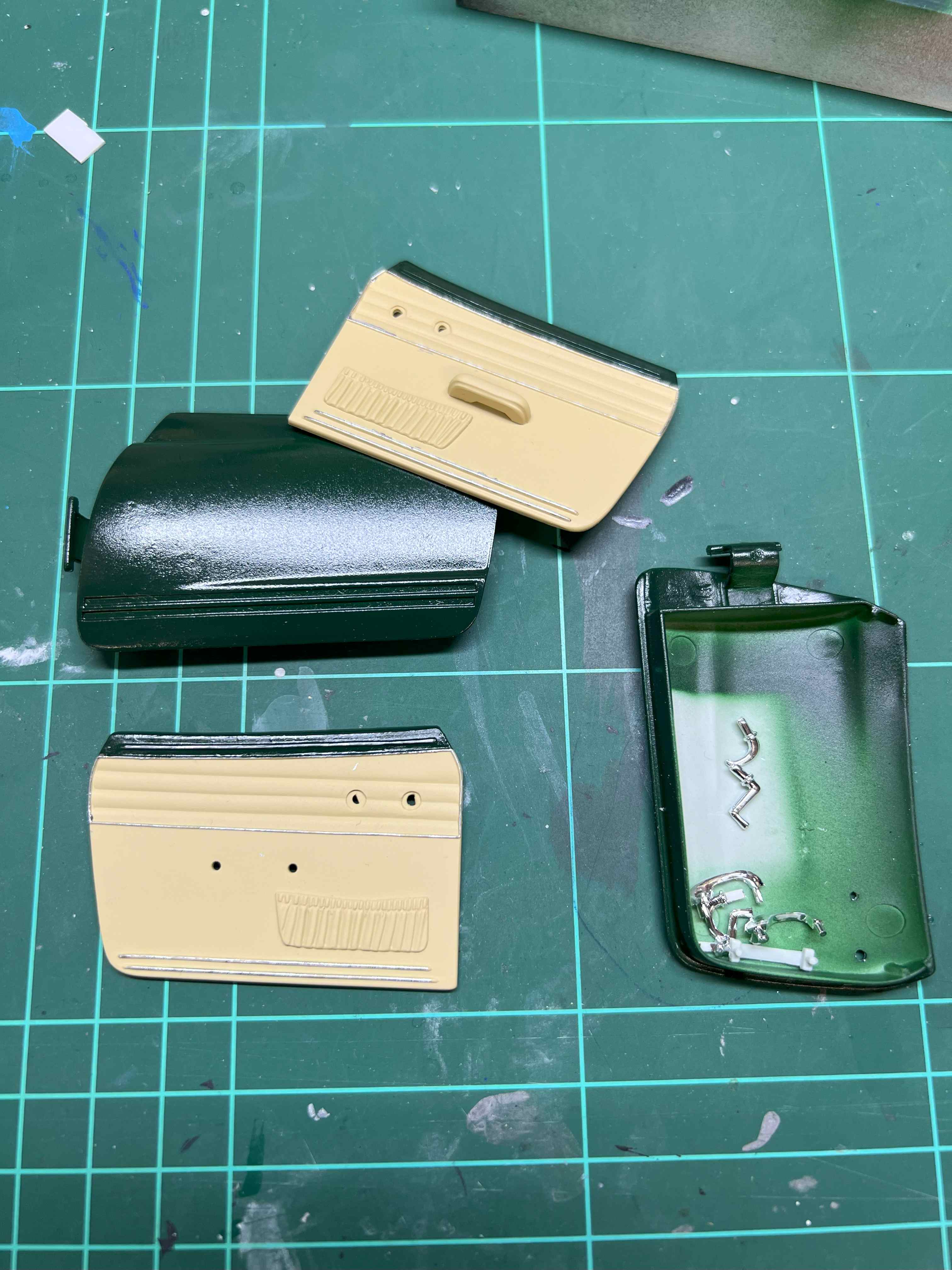 Ich habe mir die Türen vorgenommen, da bestehen nämlich nicht wie so oft aus der Tür und einem Klarsichtteil, sondern haben eine aufwendige Innenseite, die Scheiben, die Außenseite und diverse Chromteile.