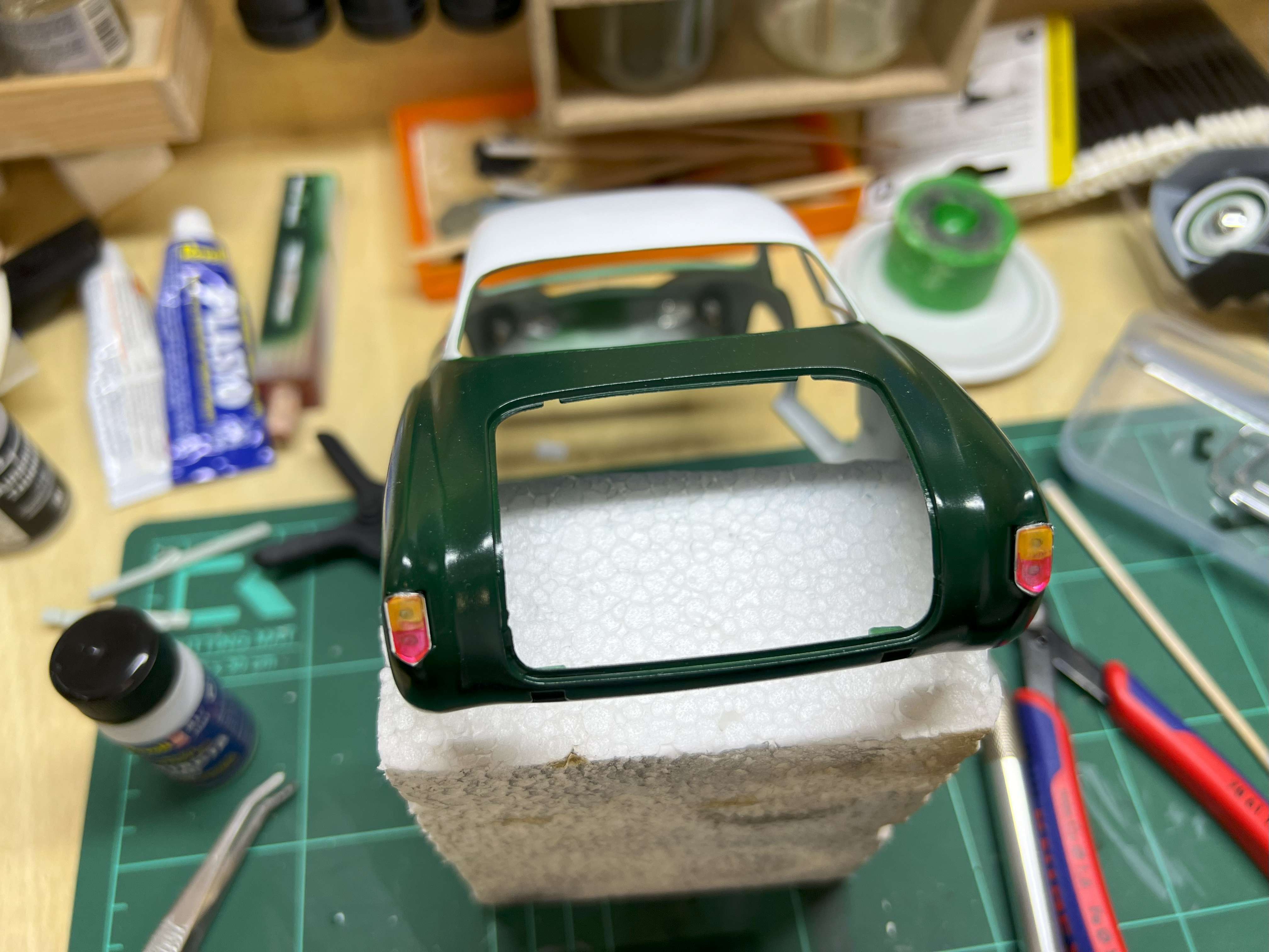 Als nächstes dachte ich mir, ich mache mal was Einfaches und kümmere mich um die Lichter des Karmann. Für das Heck war das Ganze auch kein Problem.