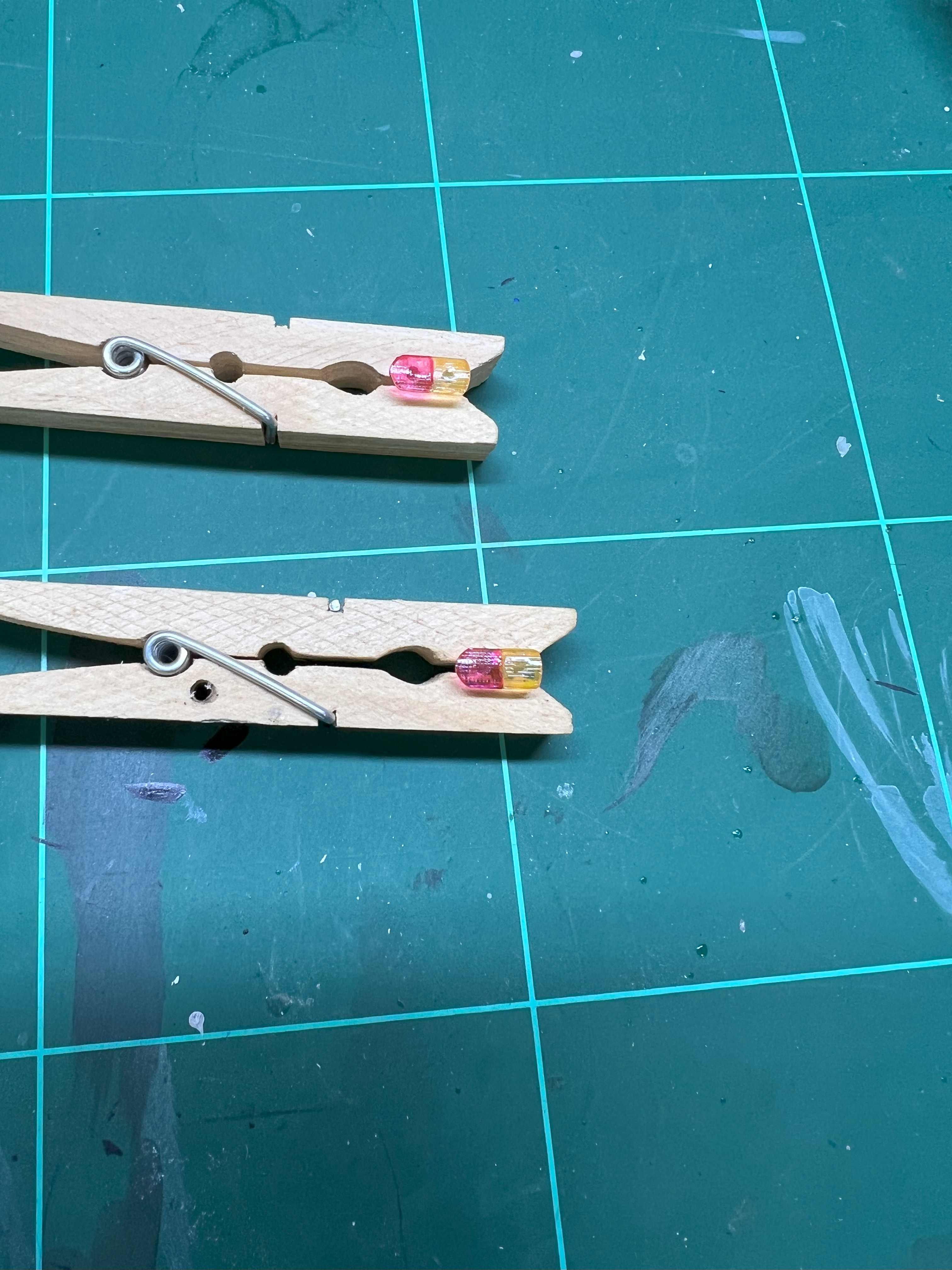 Ich verdünne mit Wasser. Ein Tropfen Wasser und fünf bis sechs "Zahnstocher-Tropfen" vom Tamiya Lack.
