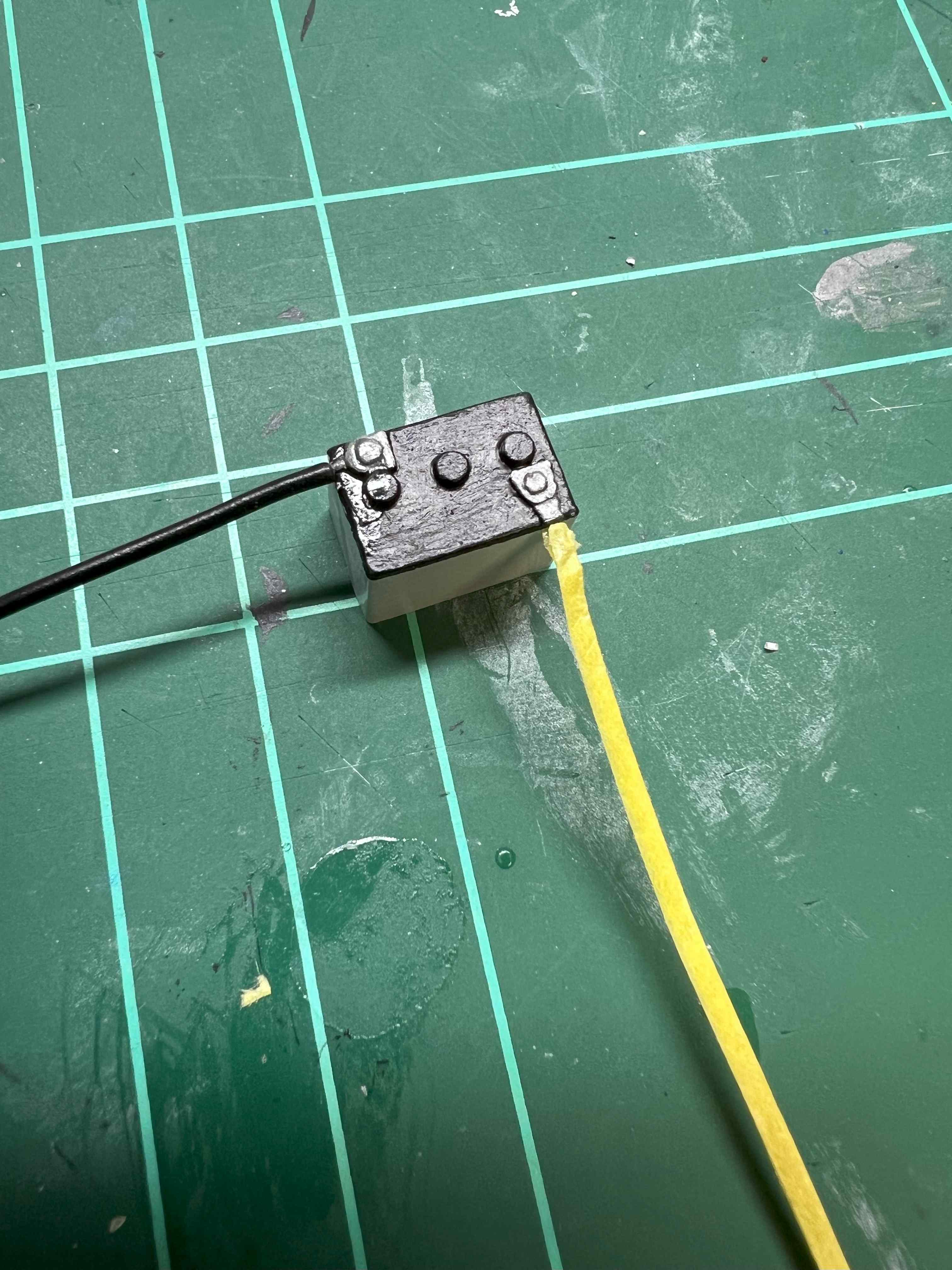 Hier erst mal die Batterie mit den neuen Leitungen. Die bestehenden waren auf der Batterie aufgeprägt und ich habe sie einfach weggeschliffen.