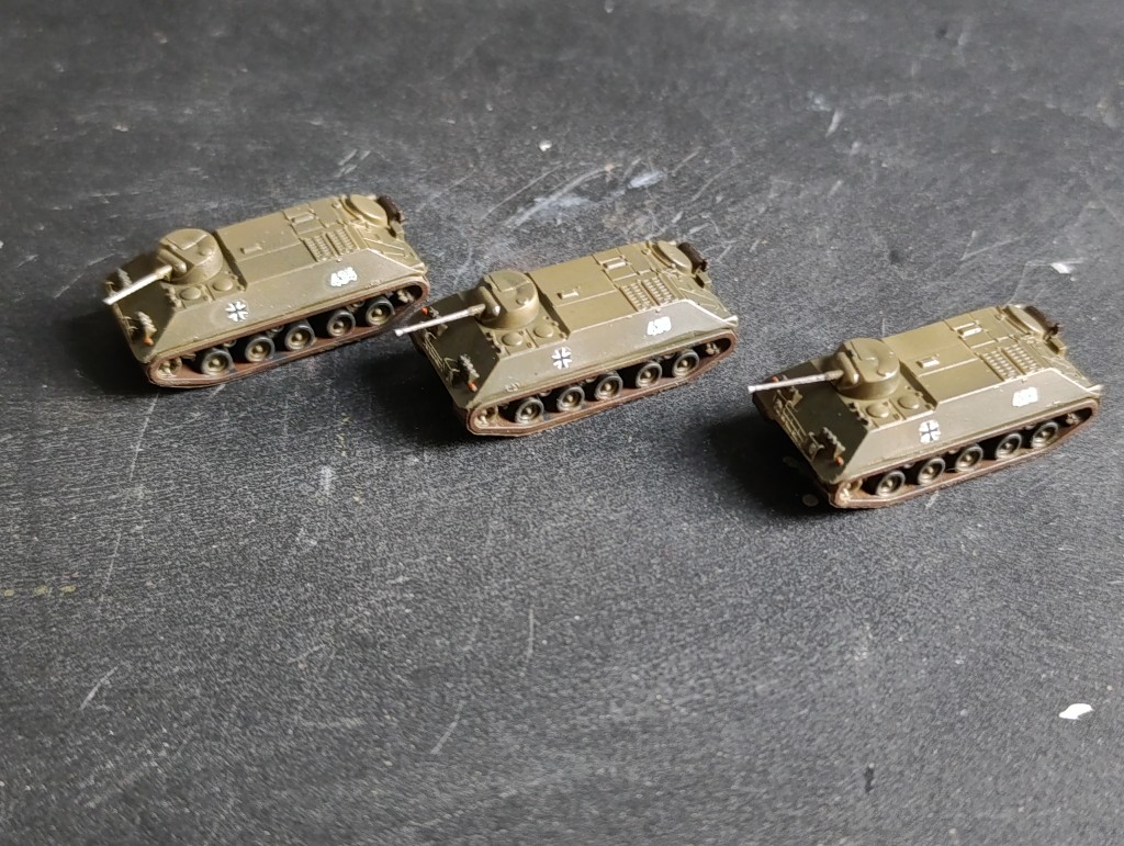 Mein Plan, wenigstens das Landungsschiff noch vor meinem Urlaub fertig zu bekommen, könnte sehr sehr knapp werden. Trotzdem habe ich immerhin schon Mal die Fahrzeuge weitgehend fertig gestellt, bis auf die MANs.