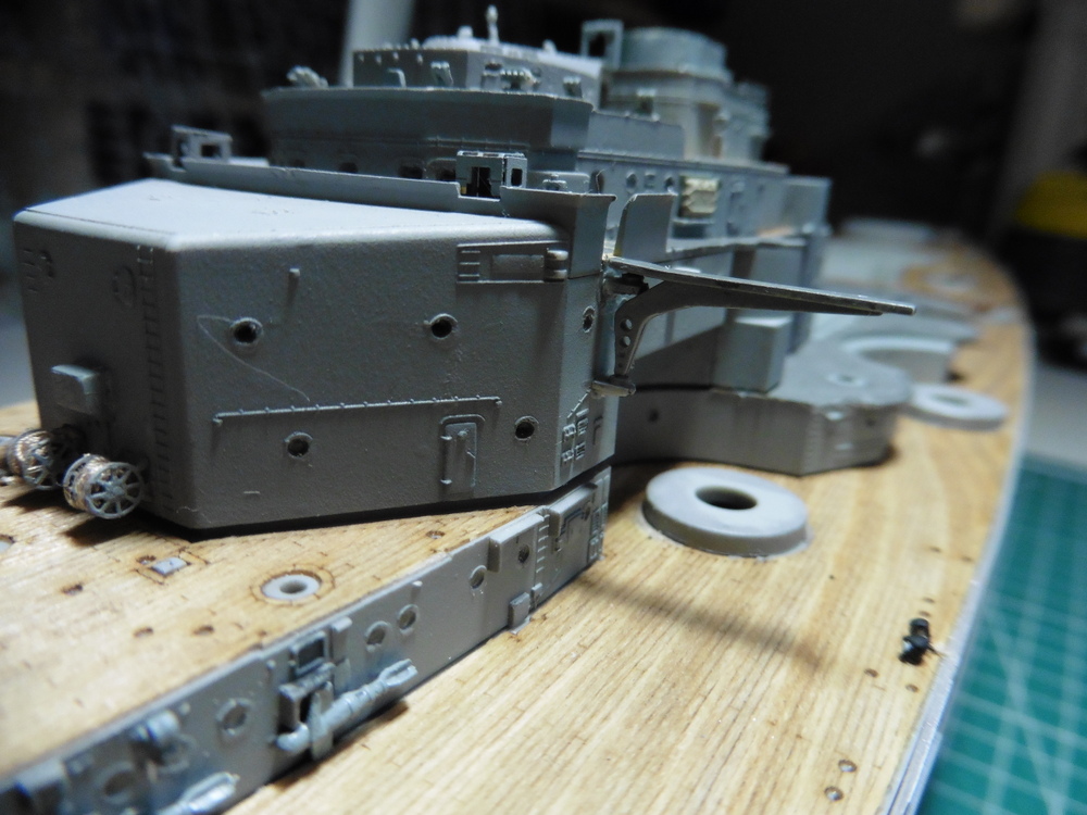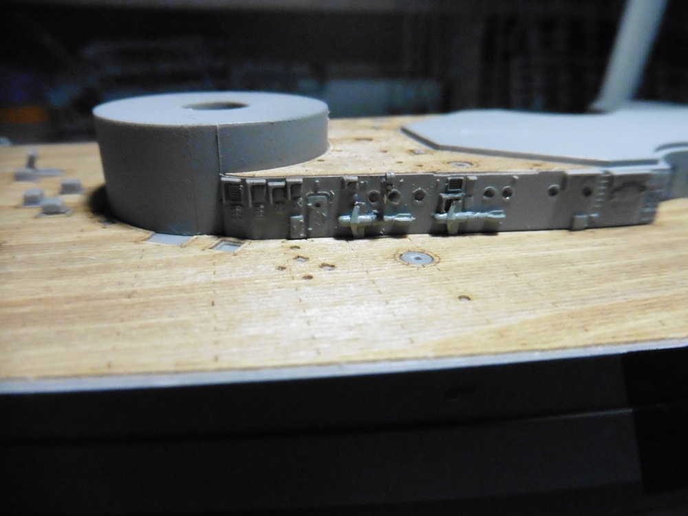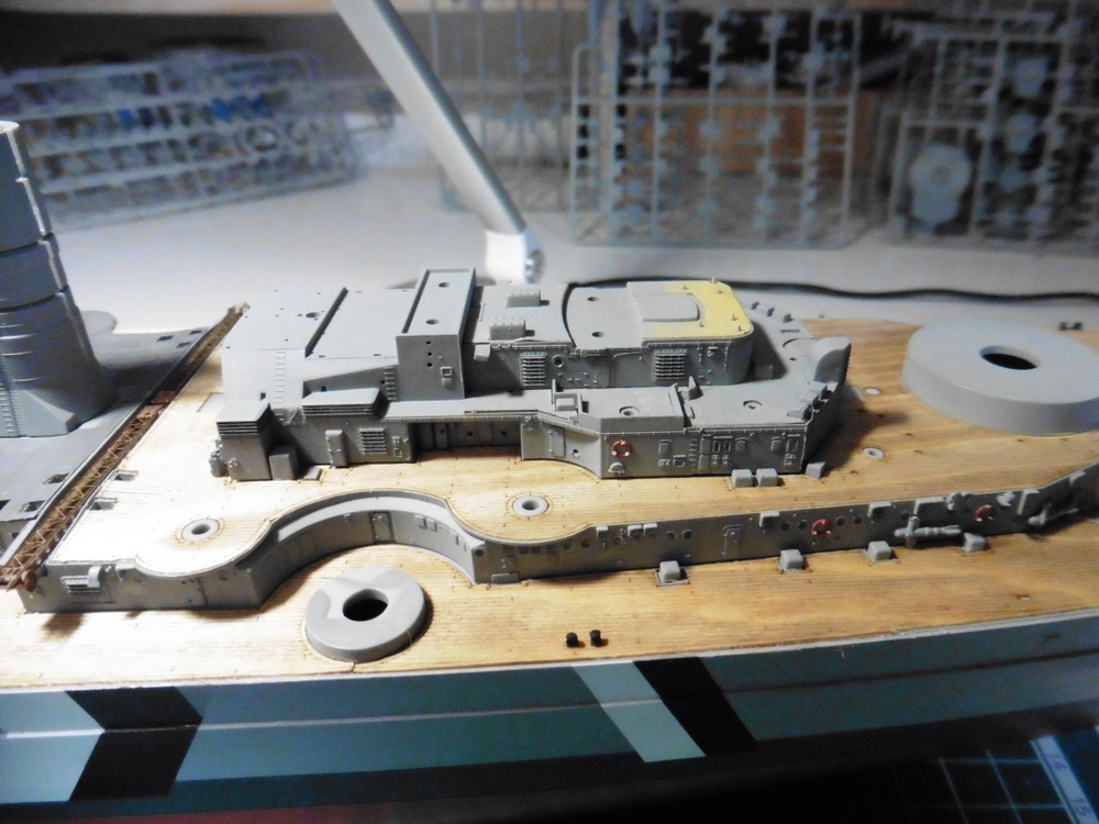 Als nächstes werden die beiden kleinen Hangar rechts und links neben dem Schornstein gebaut ... auch hier wird es ne Menge Ätzteile geben da hier auch die ganzen Beiboote oben drauf verstaut werden ...