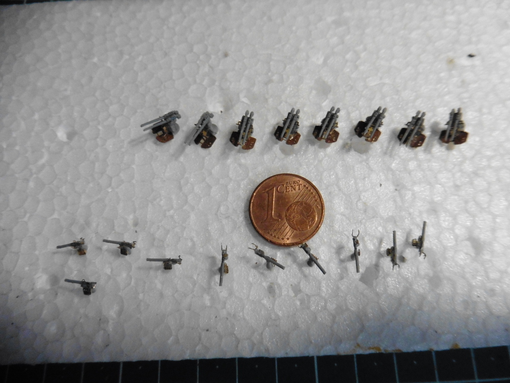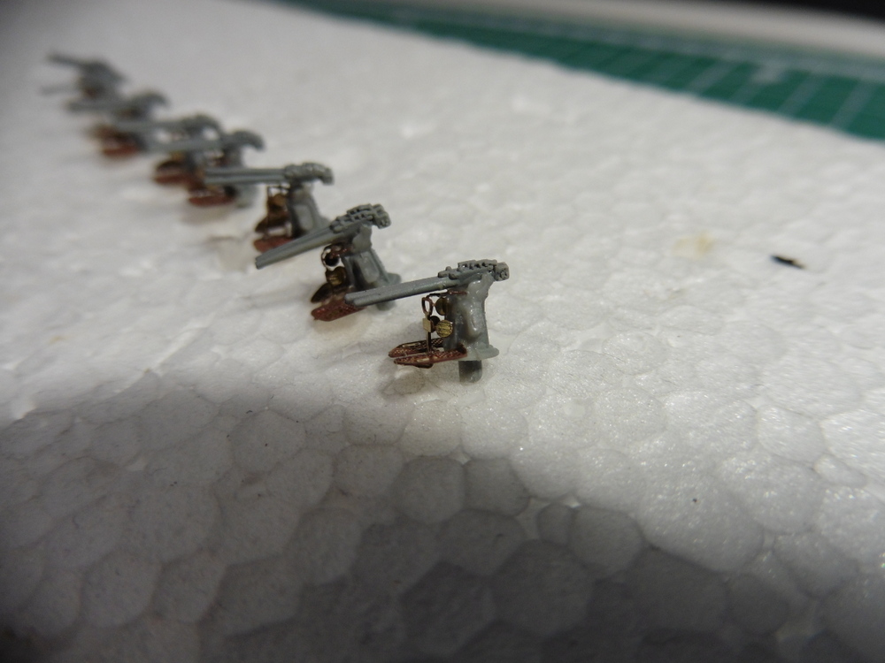 Die schweren MG´s 10 x und die 37 mm AA Gun 8x sind fertig . Als nächstes kammen die 4x 200mm AA vierlingsflack dran
