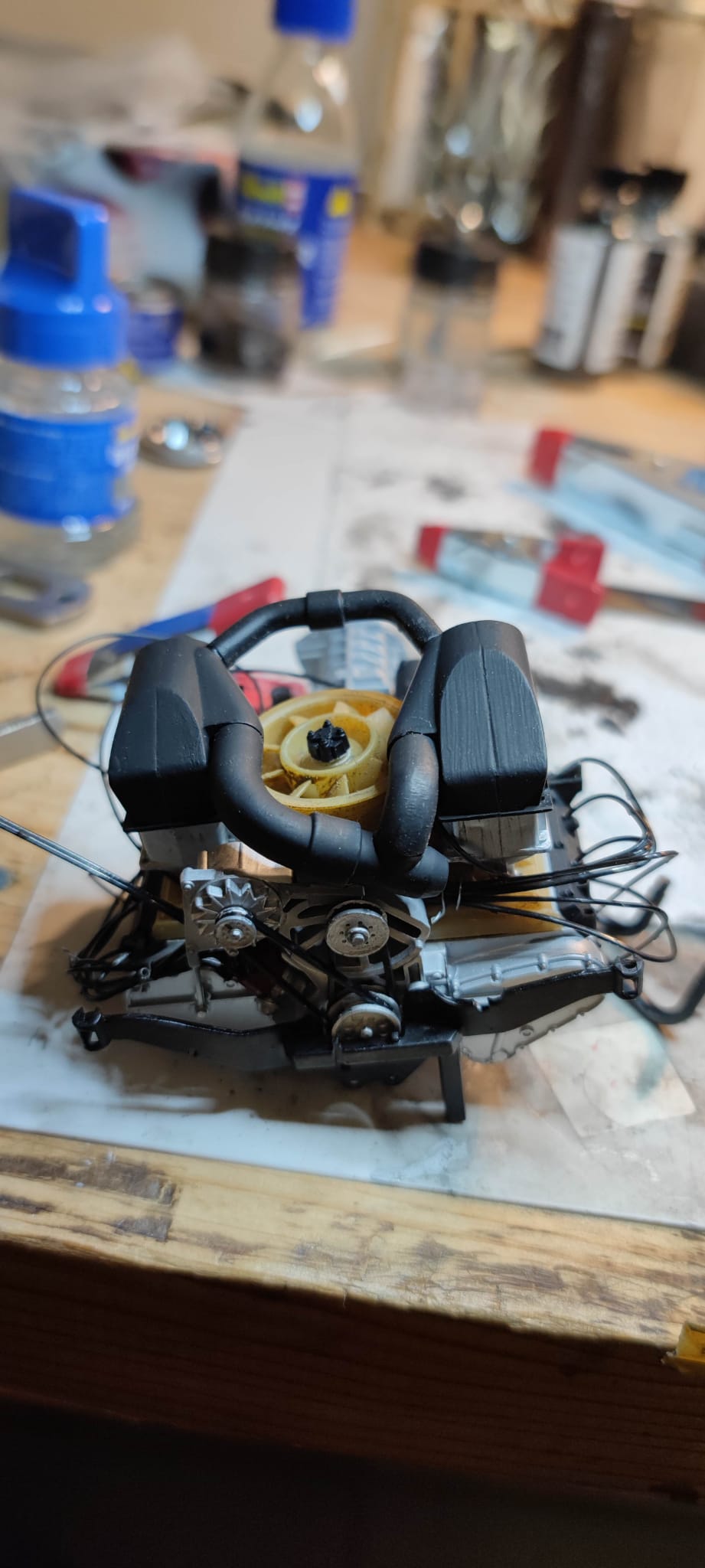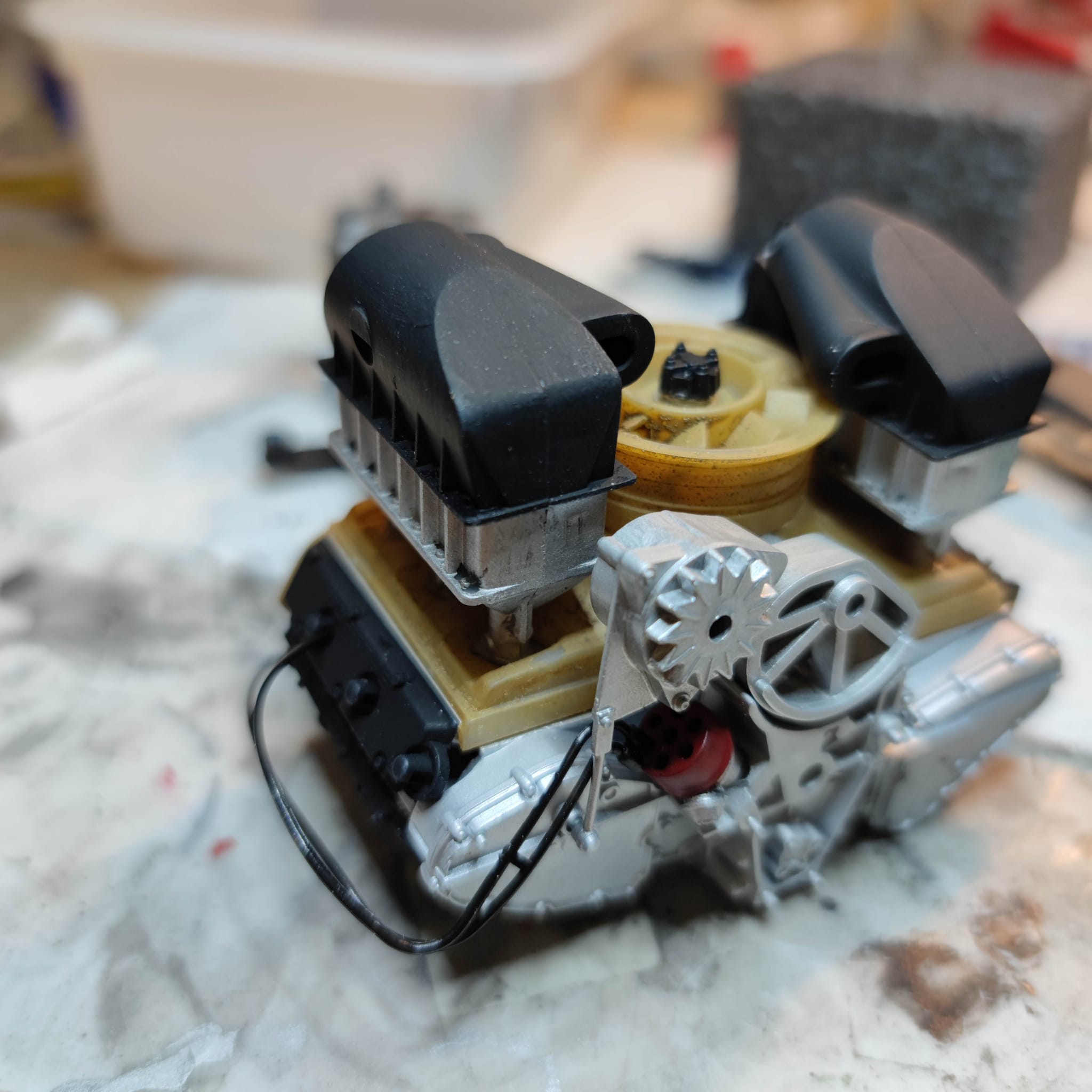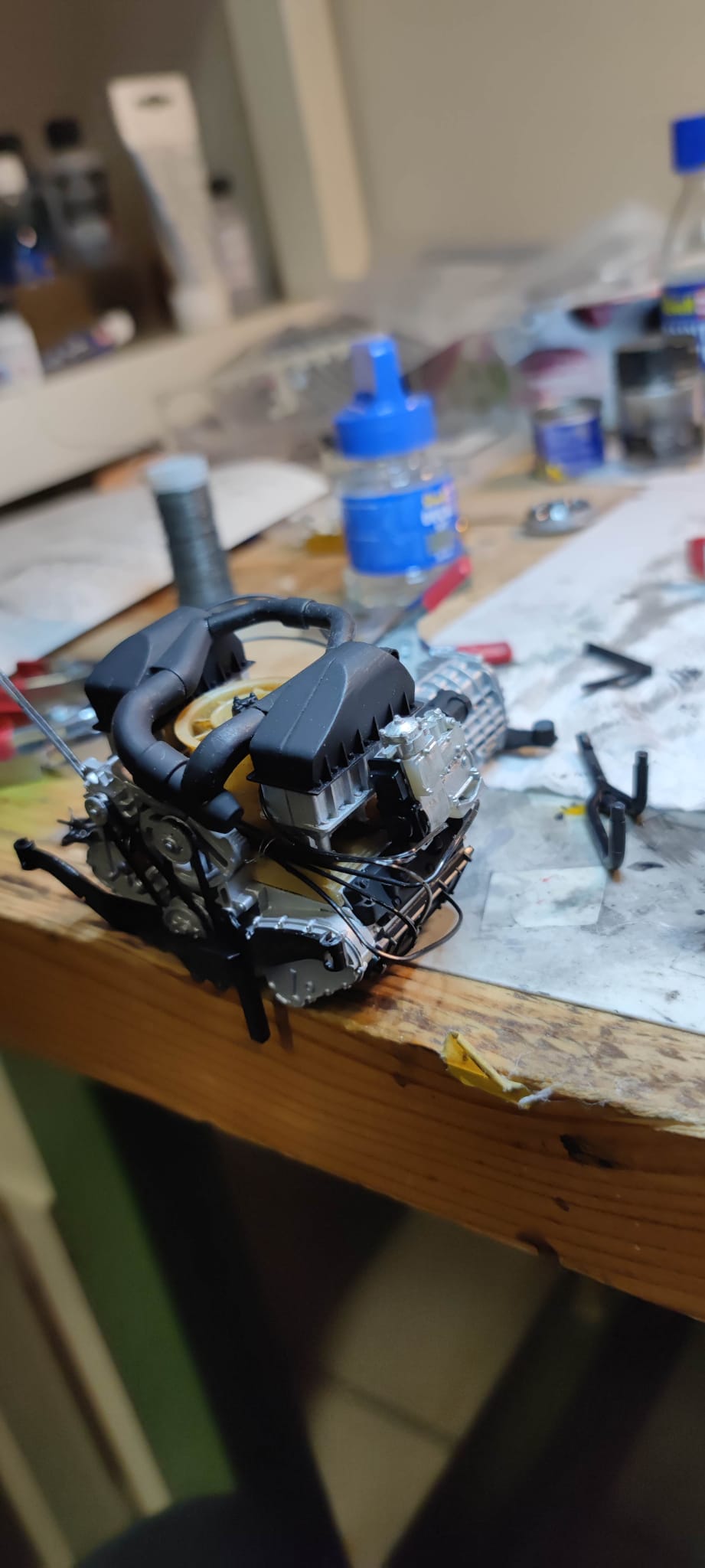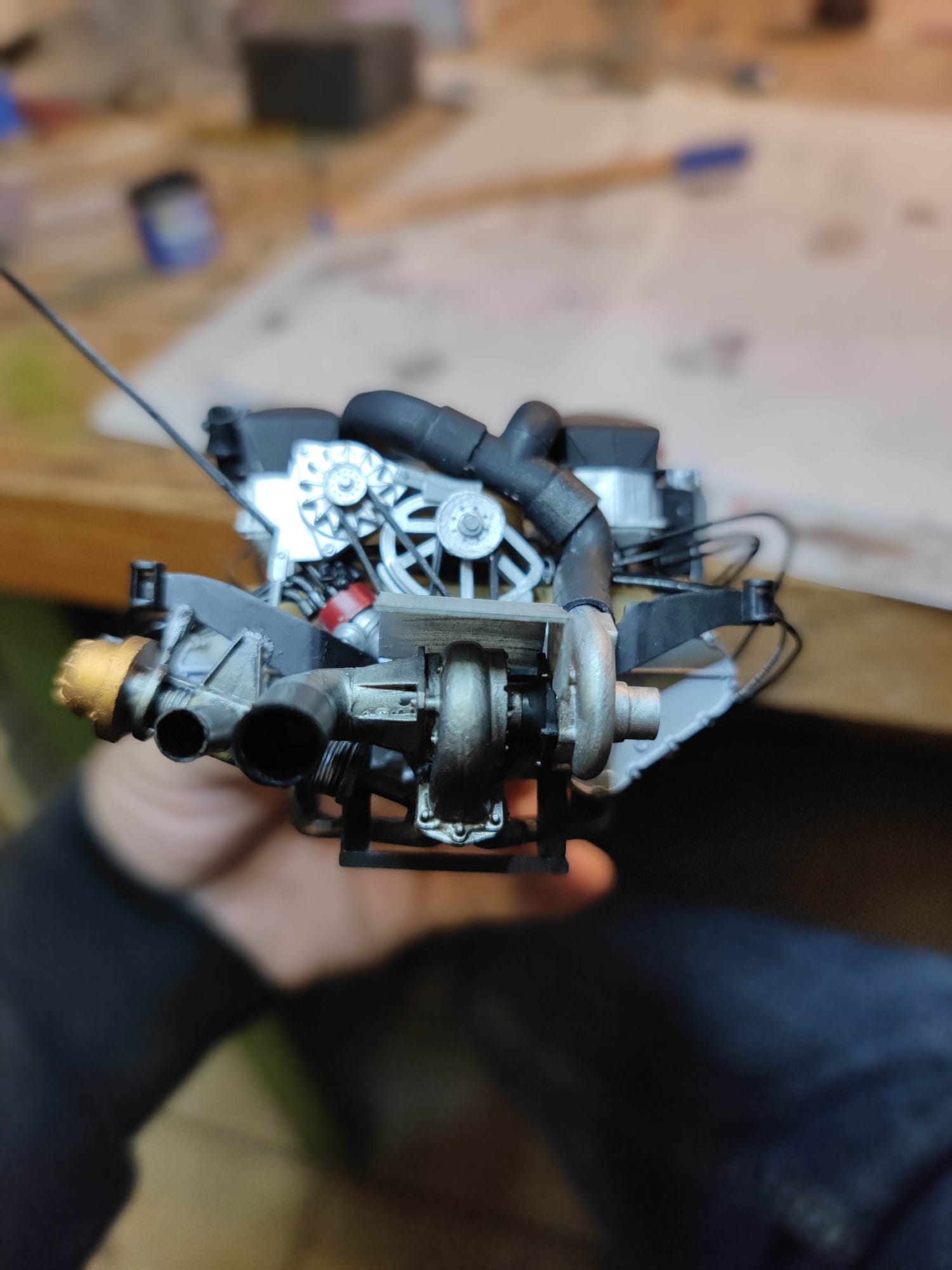 So, der Motor ist zu 80% fertig und macht keinen schlechten Eindruck. Bei den Schläuchen und Kabeln muss mir meine Frau helfen, die zu sortieren. Ich bin dafür zu grobmotorisch unterwegs.