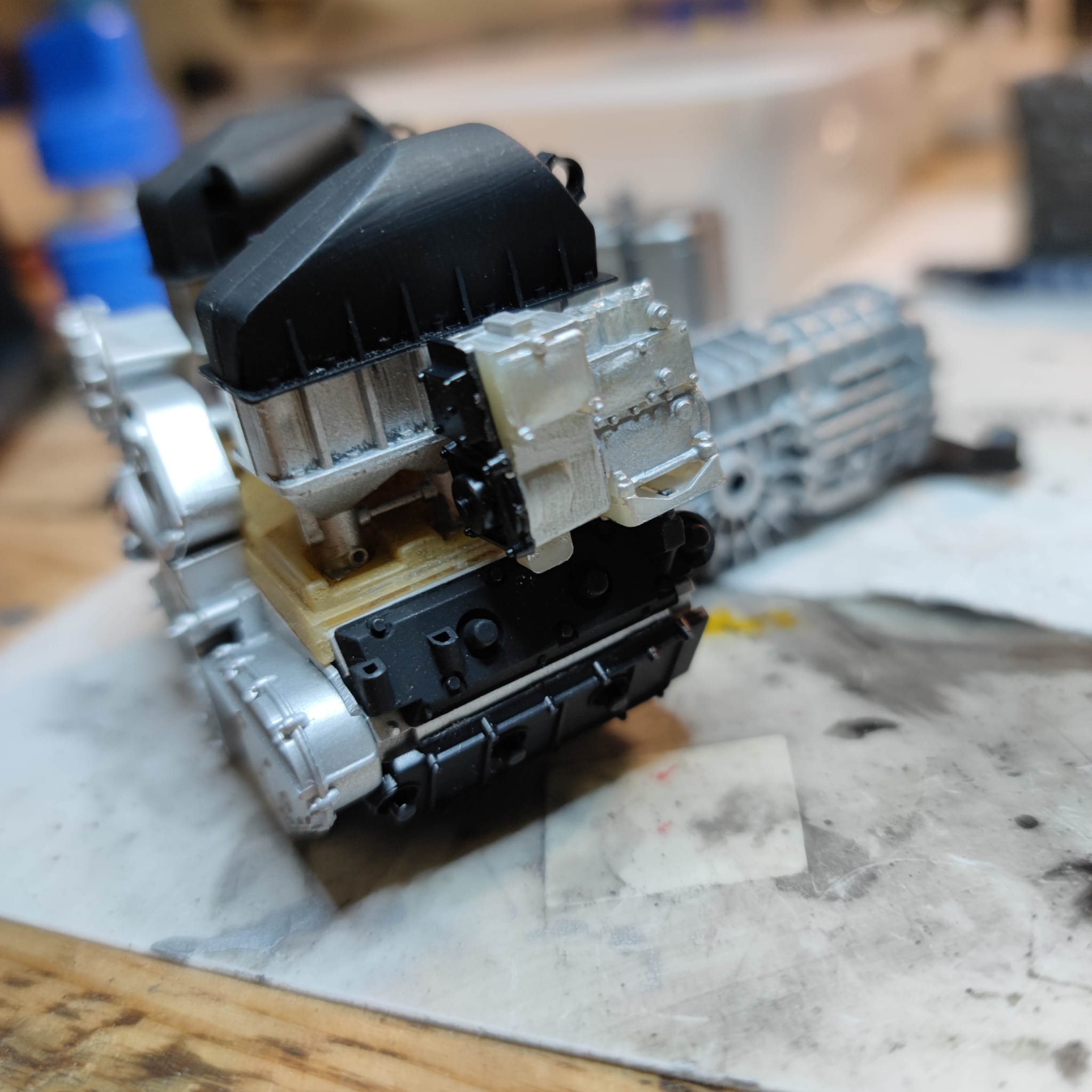 Passprobe beim Motor.... Bei den Bildern sieht man, dass ich noch die eine oder andere Stelle nacharbeiten muss. Einiges ist noch gar nicht lackiert. Sieht aber schon ganz gut aus... finde ich.