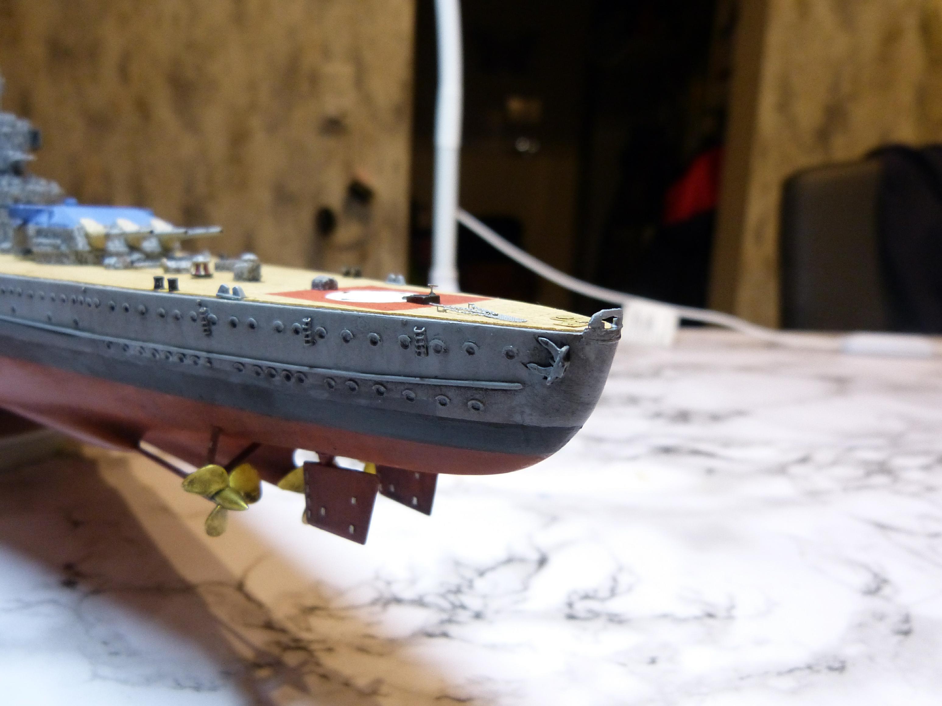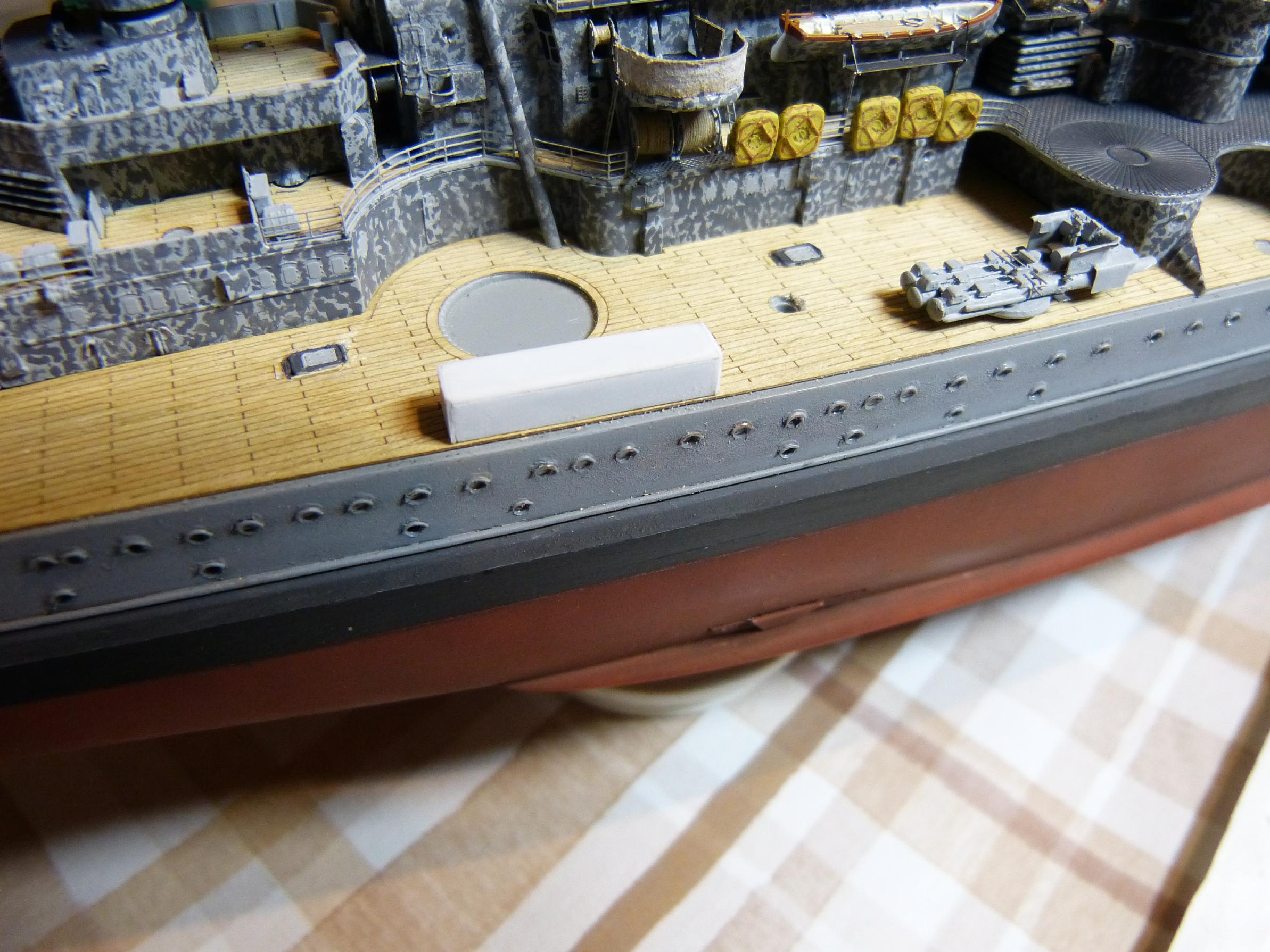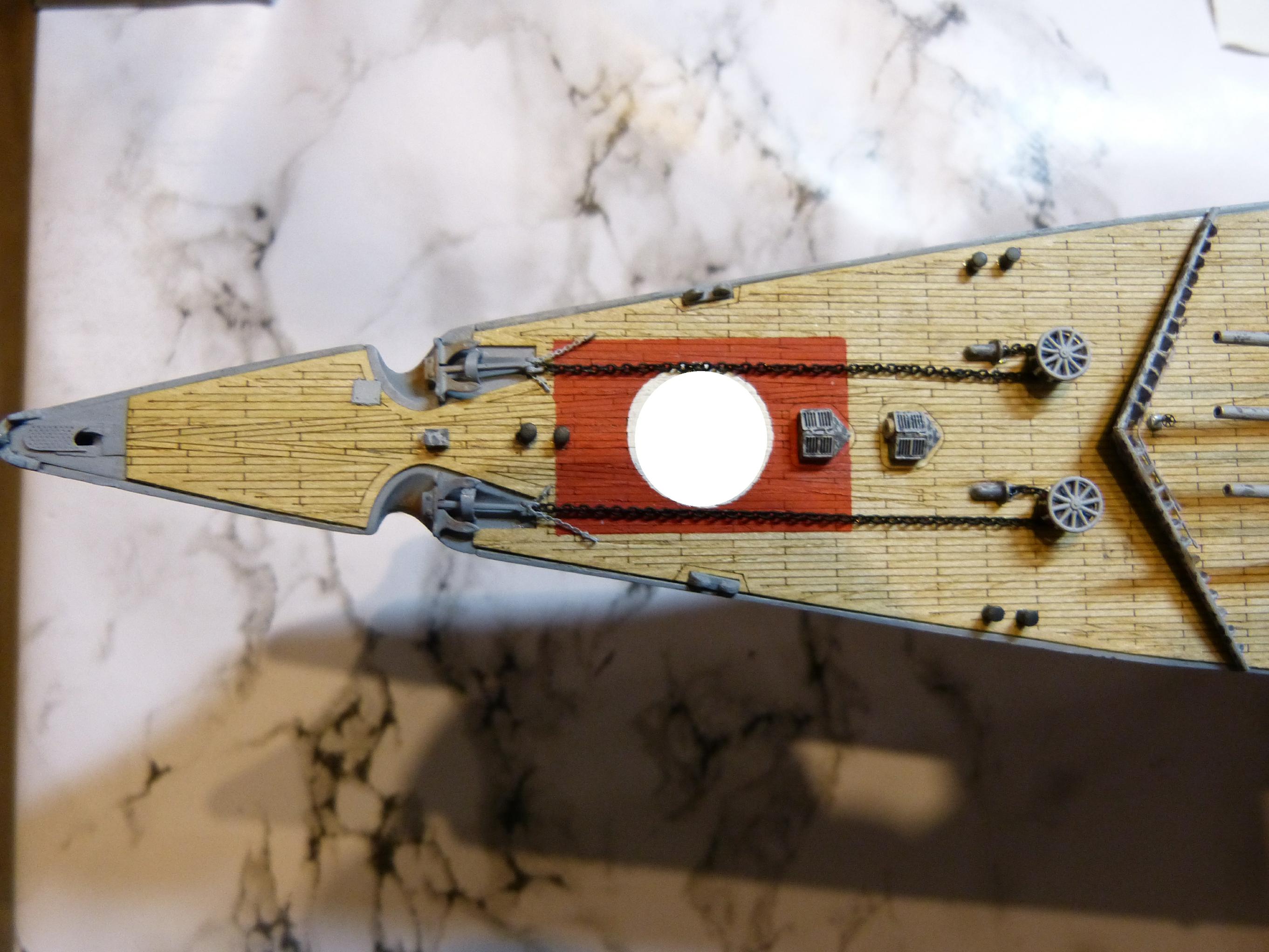 Dann nahm ich mir die Ankereinrichtungen (und parallel die vorderen Kleinaufbauten) vor, zunächst die vordere. Zur Info, seit September 1939 führte SH keinen Bugreserveanker mehr, bei GU wurde sogar beim Umbau des Stevens die entsprechende Klüse weggelassen. Offenbar war dieser 3. Anker vorn verzichtbar, oft wurde ein Ausbau „aus Gewichtsgründen“ angegeben.