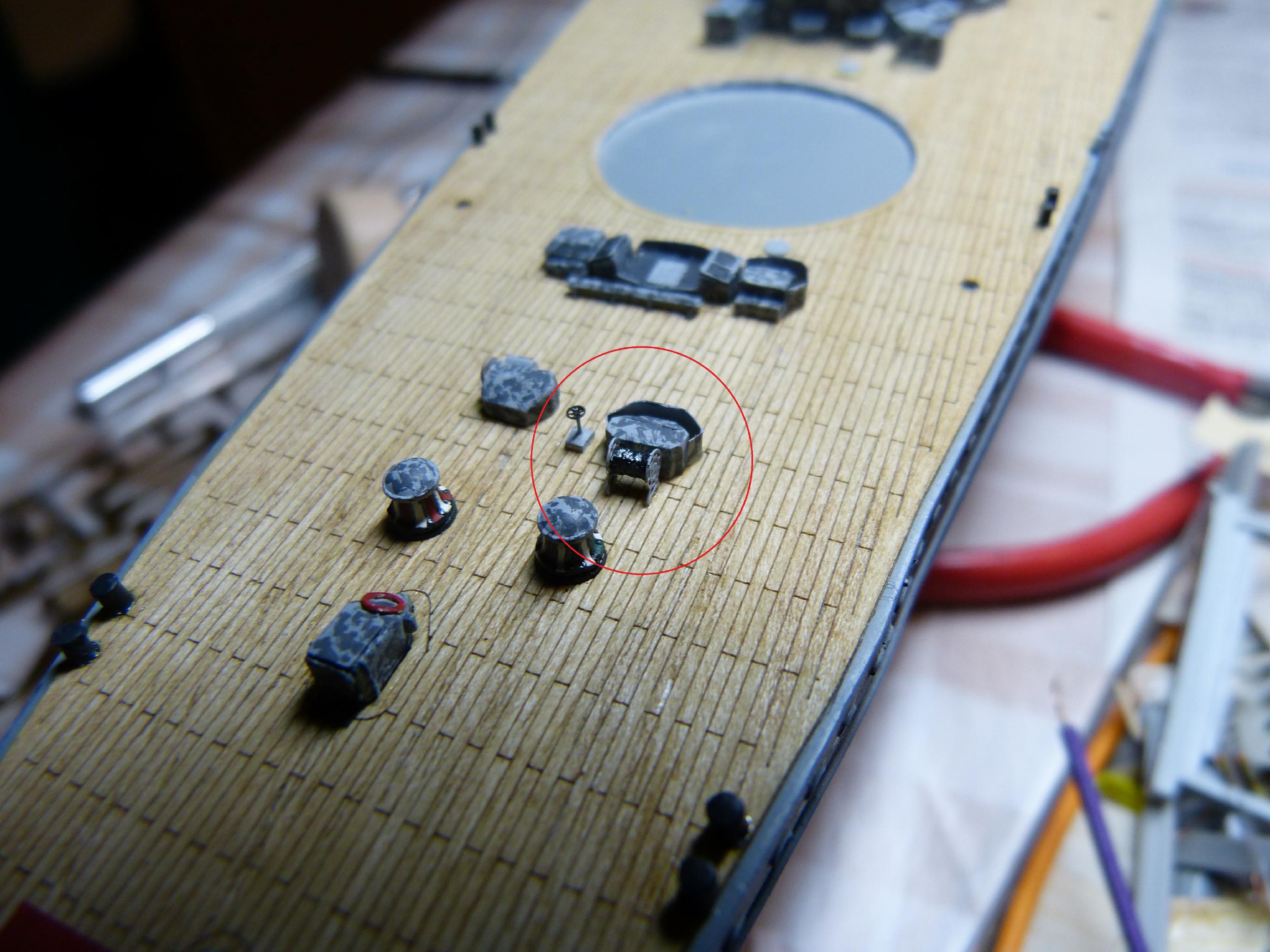 Als erstes habe ich die noch fehlende Heckankertrossenrolle ergänzt.